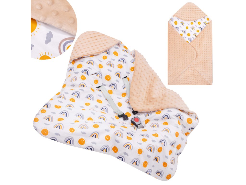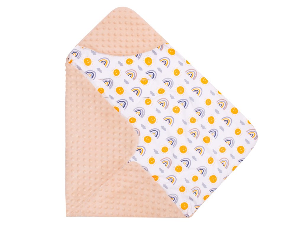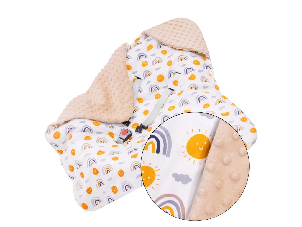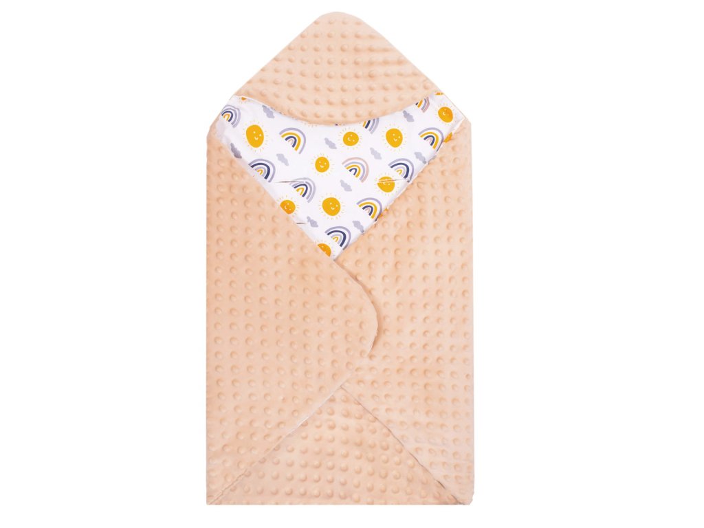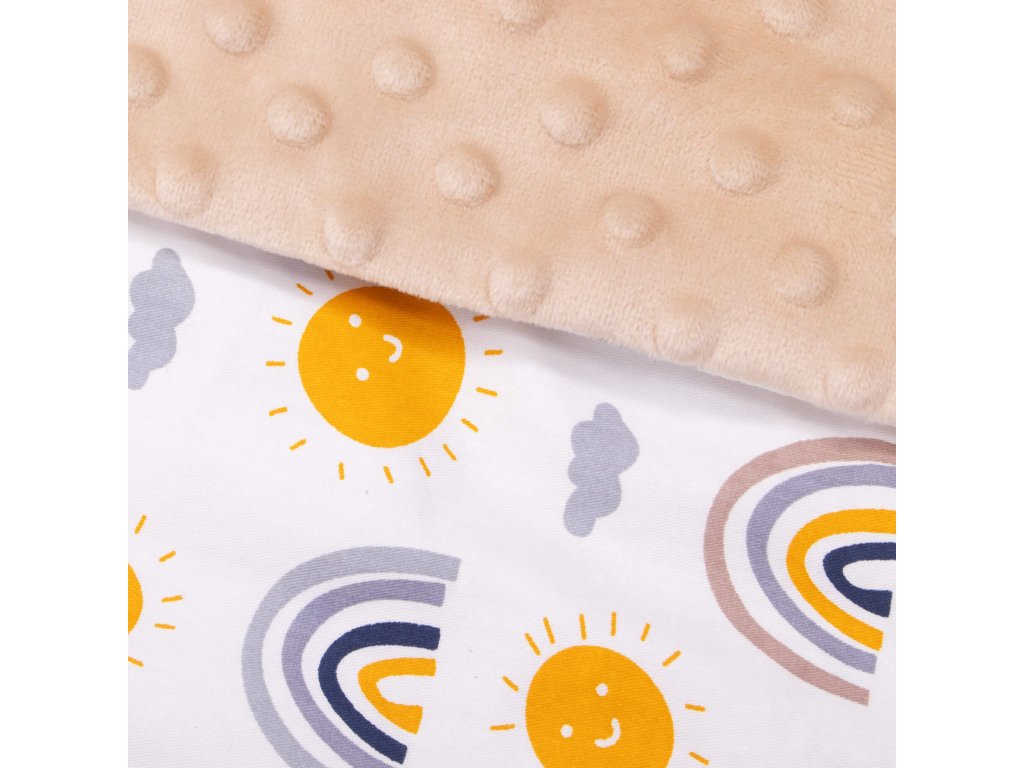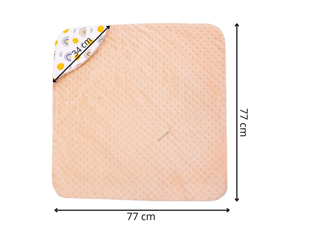 - Unutarnji materijal: tkanina tipa minky - pahuljasta i mekana, s utiscima, u bež boji