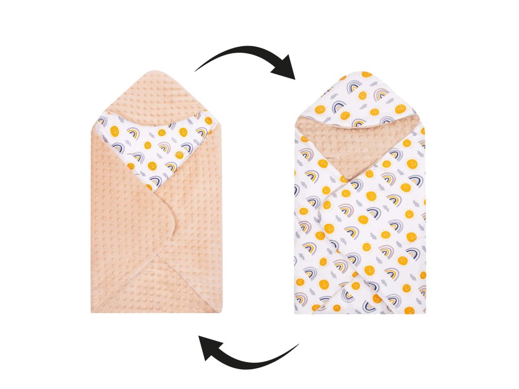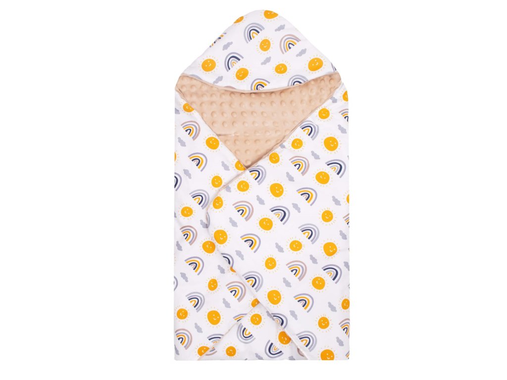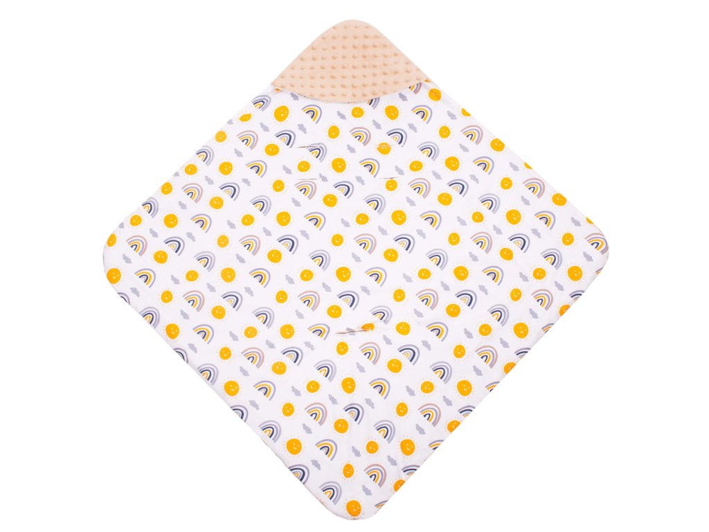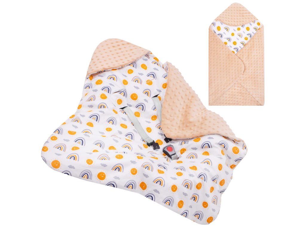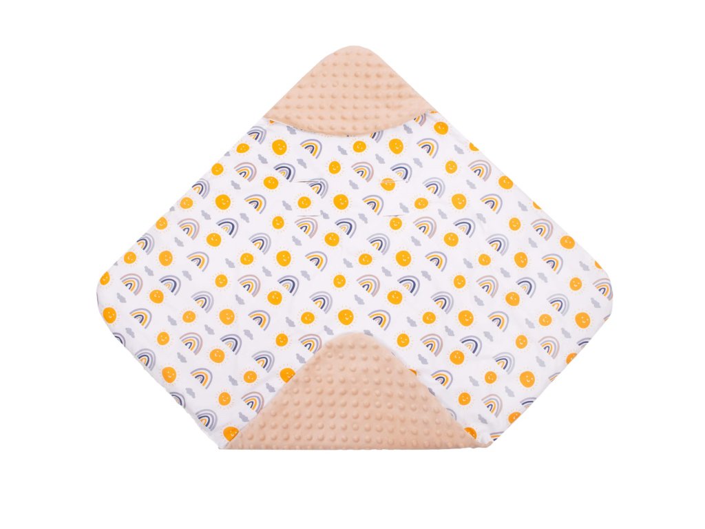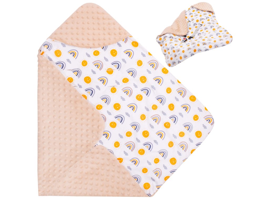 - Unutarnji materijal: tkanina tipa minky - pahuljasta i mekana, s utiscima, u bež boji
