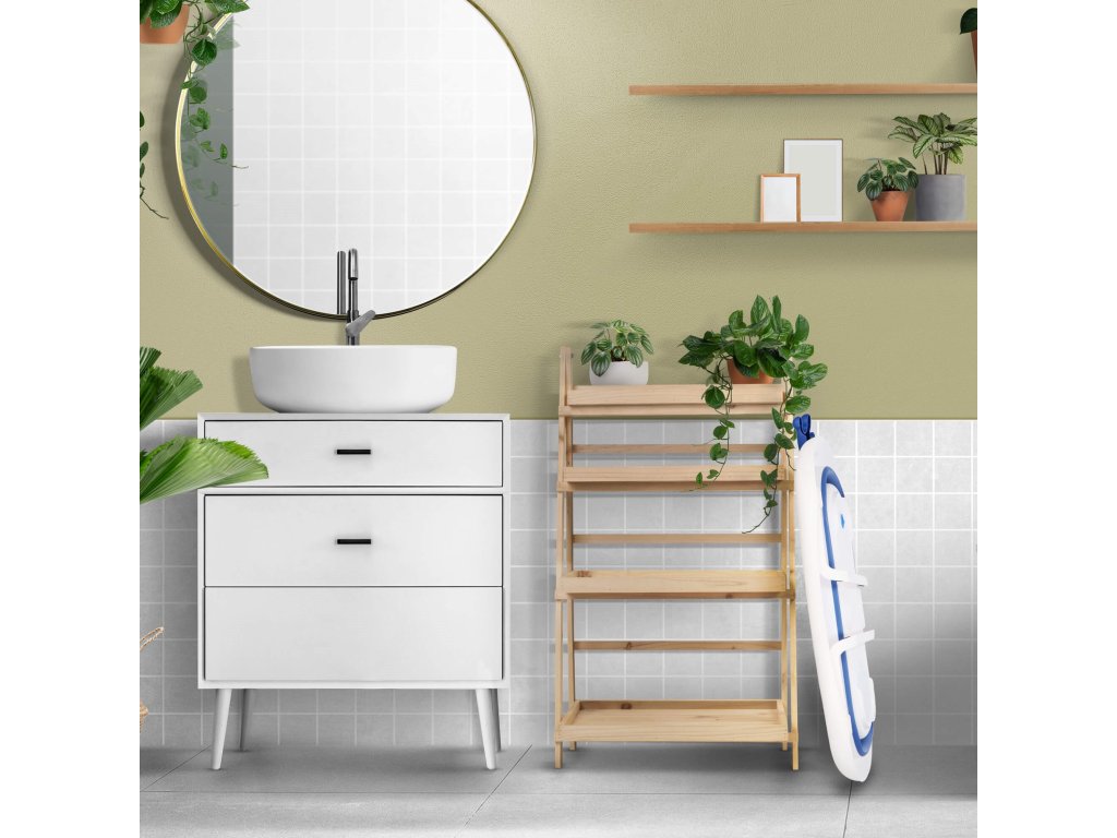- Ukupna širina: 50 cm Unutarnja visina: 20 cm Unutarnja duljina: 60 - 72 cm (dno - gornji rub) Unutarnja širina: 28 - 40 cm (dno - gornji rub) Dimenzije kada sklopljene na plohu: 83 x 50 x 10 cm Raspon potpornja na podu: 71 cm Širina potpornja: 46 cm Profil konstrukcije potpornja: cca 2,3 x 2,5 cm Širina ruba kade: cca 4 cm Promjer otvora za odvod: 2,5 cm Dimenzije ukrasnog elementa: 20 x 12 x 2 cm Dimenzije pakiranja: 84,5 x 50 x 10,5 cm Dodatne informacije: Kada sadrži dekorativni element za samostalnu montažu pomoću priloženih vijaka (3 kom) Upute u pakiranju
