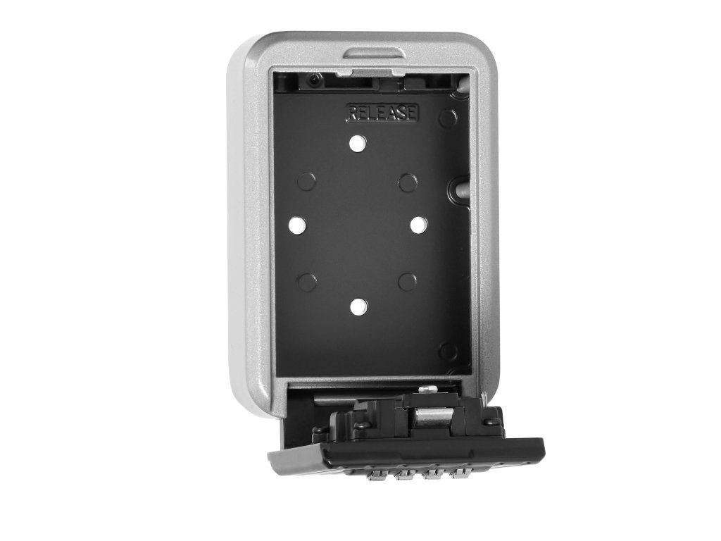 Kompaktni sef za ključe pogodan za montažu na zid, za unutarnju i vanjsku upotrebu. Ovaj sef je izvrsno rješenje kada želite pohraniti ključeve na sigurno mjesto. Četveroznamenkasta brava pruža 10.000 mogućih kombinacija kodova, a korišteni mehanizam sprječava pokušaje provale prednje ploče. Korišteni materijali jamče dugotrajnu otpornost proizvoda na vremenske uvjete. Vijci za montažu su uključeni u isporuku.Tehnička Specifikacija