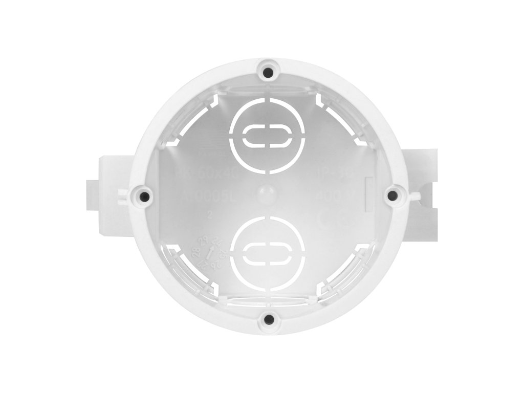 Proizvod je izrađen od bijele plastike. Okrugla je, promjera 62 mm. Unutarnja dubina od 41 mm omogućuje instalaciju u skučenim prostorima.
