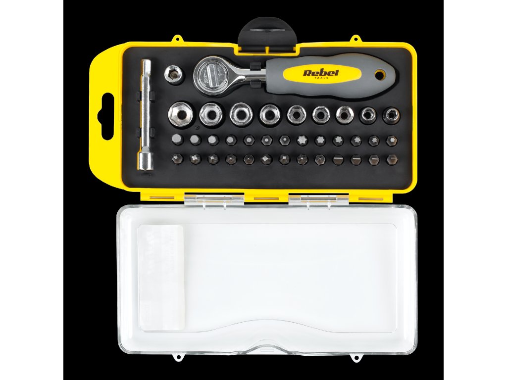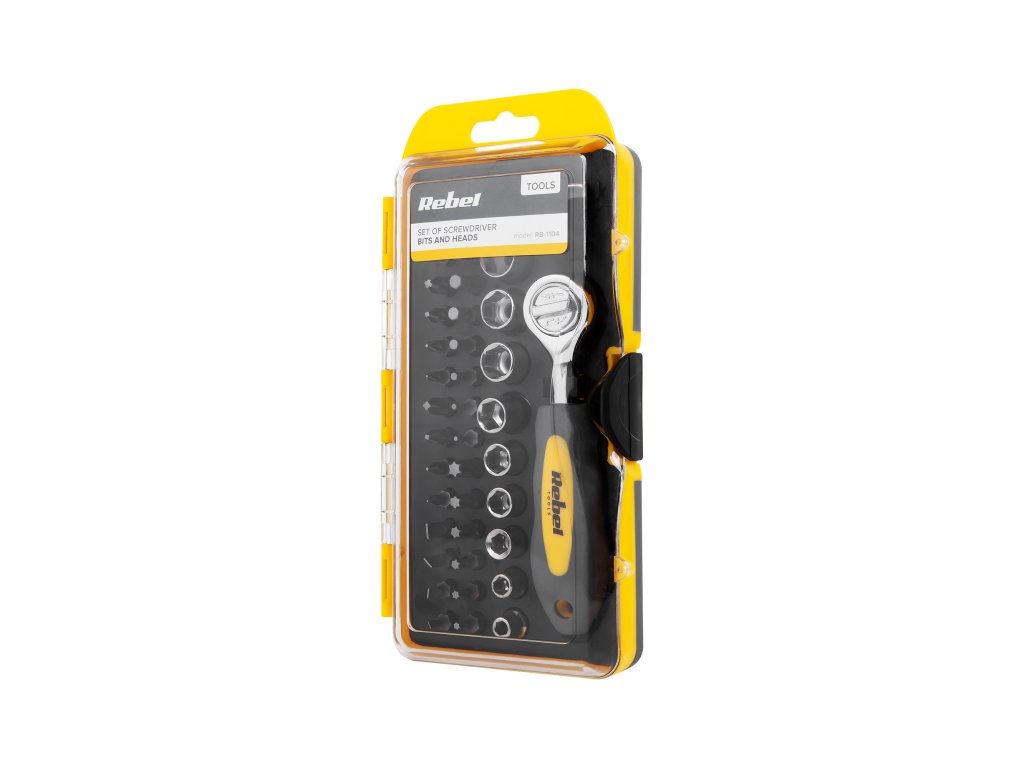 Želite li imati pravi broj potrebnih alata za olakšavanje montaže i popravaka Budite uvijek spremni za posao! RB-1104, set od 38 bitova Rebel Tools, nešto je što bi svaki majstor trebao imati u svojoj radionici. Svaki dodatak koji je uključen u paket, poput zupčastog ključa, magnetskog adaptera, produžne drške, 9 nasadnih ključeva i raznih vrsta bitova, sigurno će olakšati majstorstvo. Ergonomična drška ključa pružit će dodatnu udobnost u radu, a zahvaljujući krom-vanadijevom čeliku otpornom na koroziju i hrđu, set Rebel Tools služit će vam stvarno dugo. Nabavite poklon u obliku seta bitova i unaprijedite svoju malu radionicu!