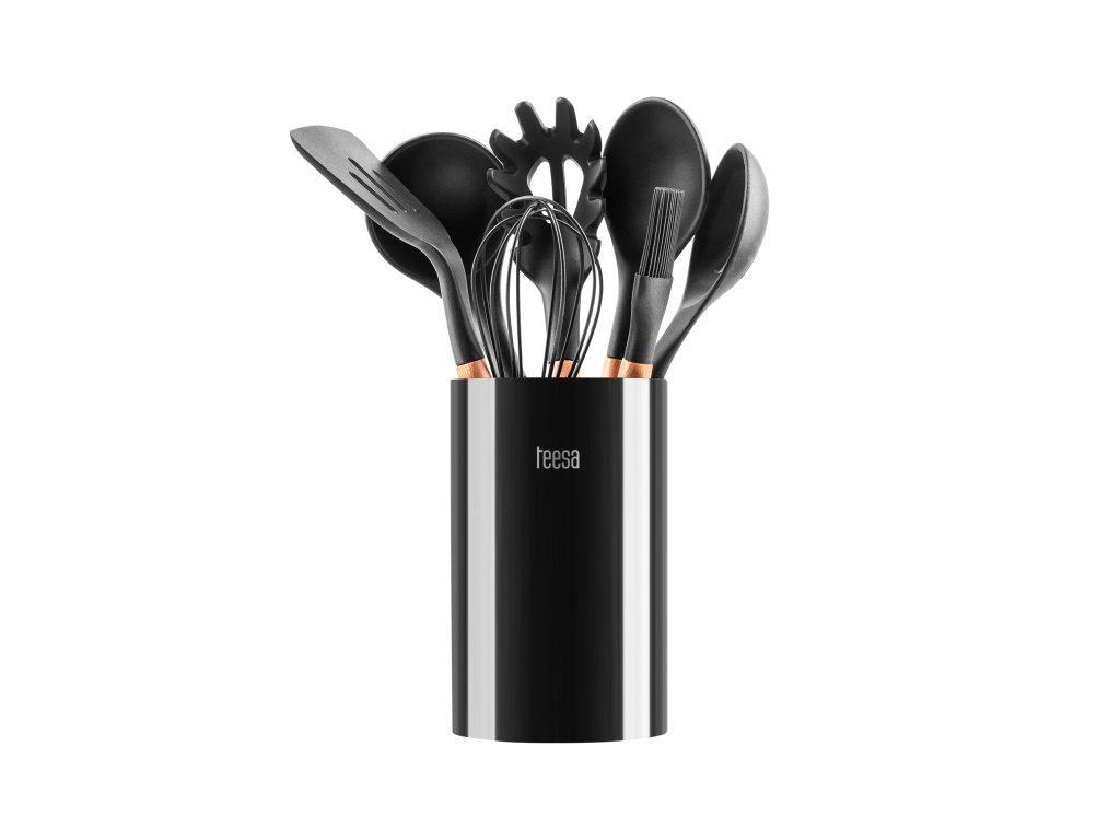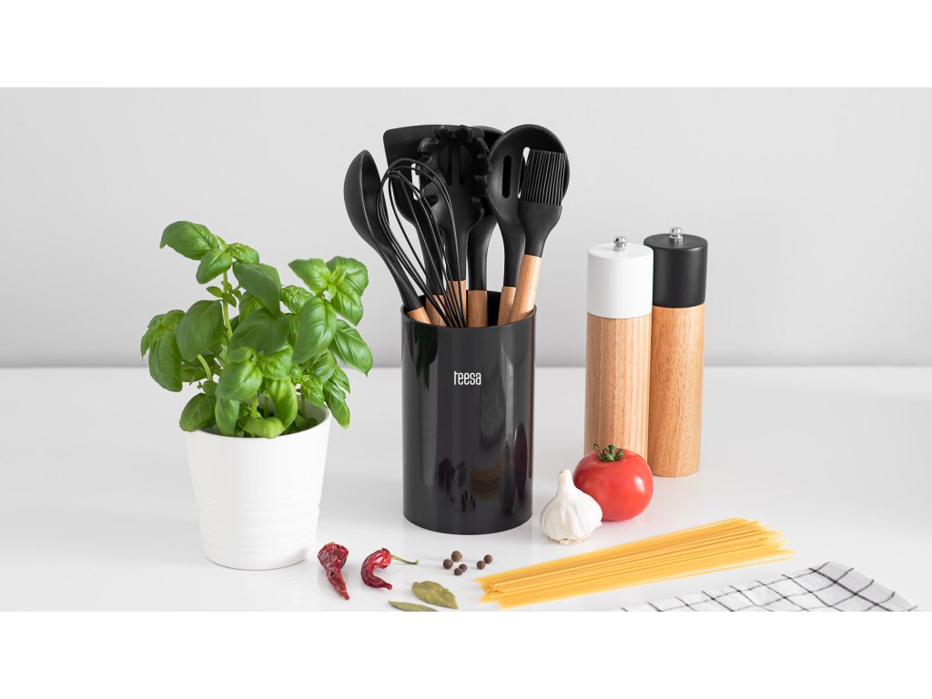 Set kuhinjskog posuđa Teesa TSA0122 stvoren je s namjerom da savršeno upotpuni interijere klasičnih i modernih kuhinja. Sadrži sve najčešće korištene pribore za pripremu svakodnevnih jela, kao što su kutlača, žlica za posluživanje i žlica za tjesteninu, lopatica i cjediljka, četkica i pjenjača.
