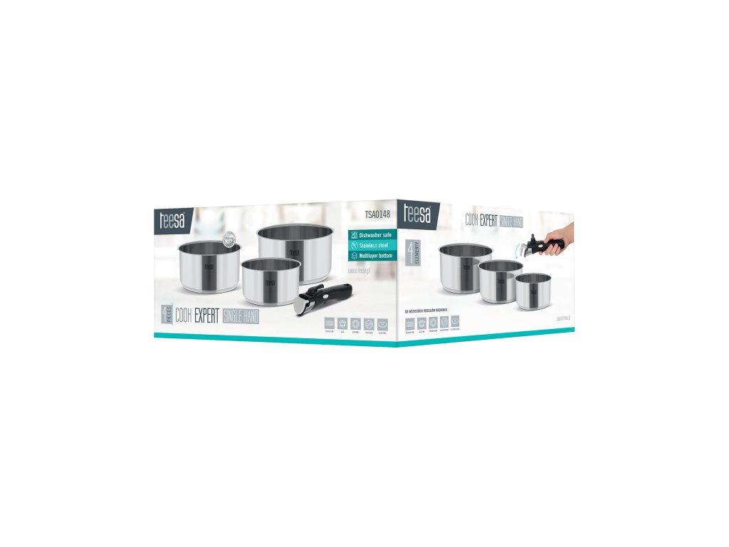 Za još jednostavnije korištenje, set Teesa Cook Expert Single Hand opremljen je uklonjivom ručkom koja ne provodi toplinu. To osigurava stabilnost i sigurnost prilikom kuhanja vaših omiljenih jela.