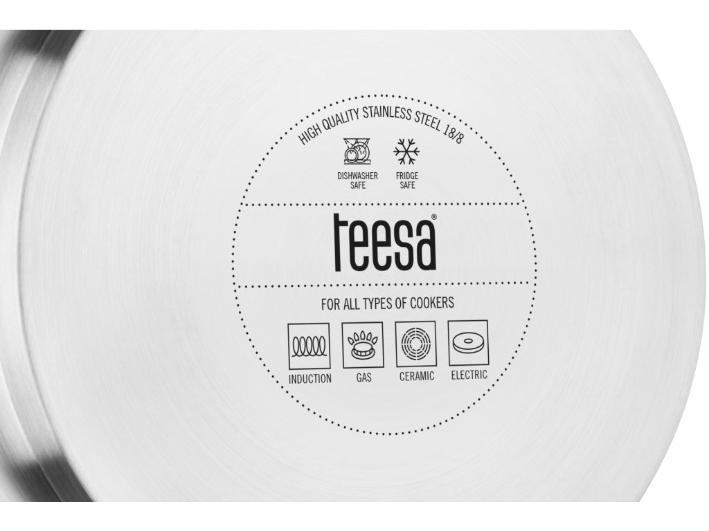 Višeslojna konstrukcija dna lonaca Teesa savršeno provodi i akumulira toplinu. To znači da se brzo zagrijava, dobro održava toplinu i ravnomjerno je raspoređuje po cijelom loncu. Višeslojna baza također sprječava prianjanje ili prepečenje pripremljenog jela.
