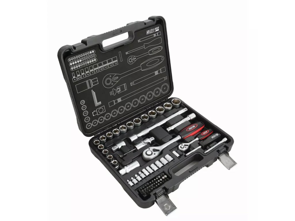 Sve je zapakirano u izdržljiv, praktičan kofer za jednostavan transport ključeva i održavanje reda, jer svaka utičnica ili ključ ima u njemu određeno mjesto.