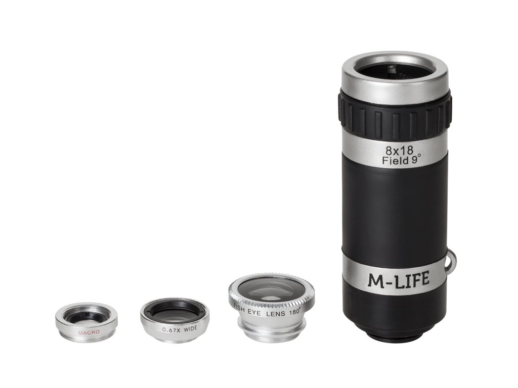 Jedan od dijelova seta je objektiv tipa ribje oko, koji proširuje i naglašava snimke bez tamnog kruga. Fotografije koje pokrivaju veće područje s 0,33-puta povećanjem dobivaju originalnu dimenziju. Makro objektiv pruža 10-puta povećanje, koje vam omogućuje izradu oštrih i jasnih snimaka iz neposredne blizine. Idealan je ako želite uhvatiti fine detalje uz zadržavanje dobre kvalitete fotografija.