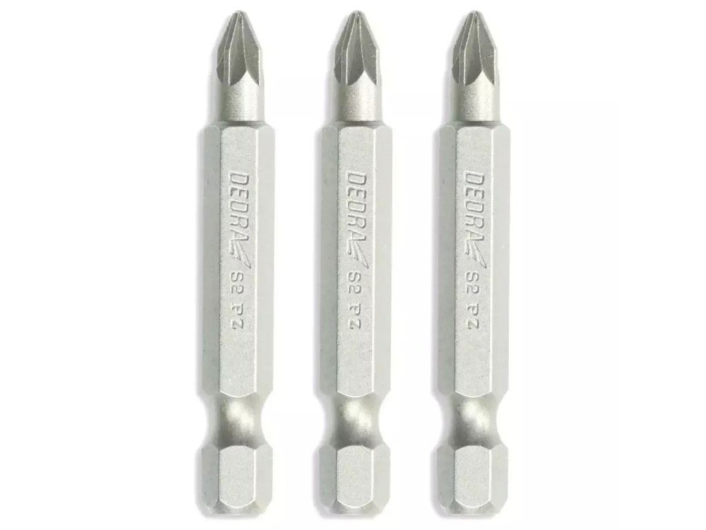 Set odvijačkih bitova PZ1/PZ 2/PZ3. Bitovi su izrađeni od S2 čelika, koji se ističe visokom tvrdoćom i otpornošću na udarce. Zahvaljujući kemijskom sastavu i toplinskoj obradi, bitovi dugoročno zadržavaju svoje visoke čvrstoće.
