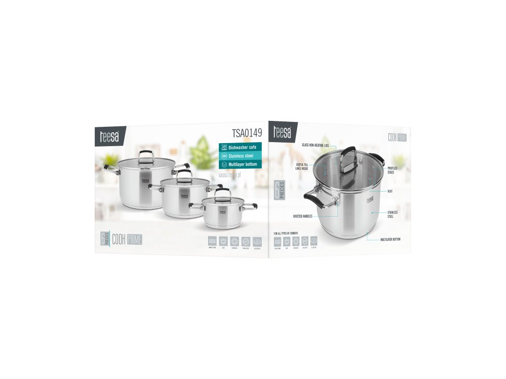 Pretvorite svakodnevno kuhanje u čistu radost! Set lonaca Teesa Cook Prime je idealan izbor za ljude koji cijene kvalitetu, funkcionalnost i elegantan izgled u kuhinji. Lonci od nehrđajućeg čelika Teesa pokazat će se korisnima i u velikoj obiteljskoj kuhinji, kao i u malom kuhinjskom kutku u studijskom stanu.