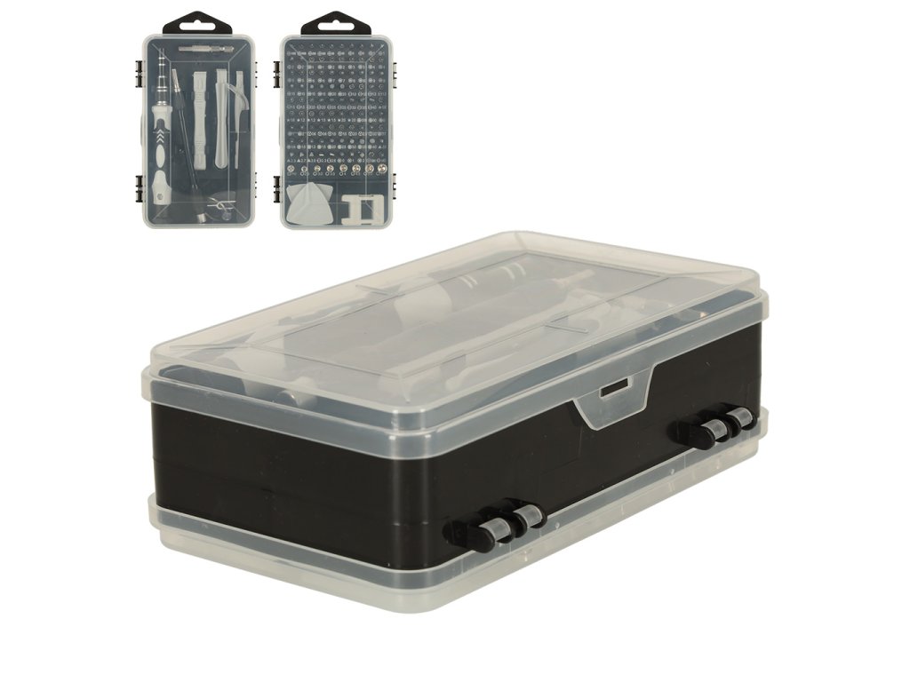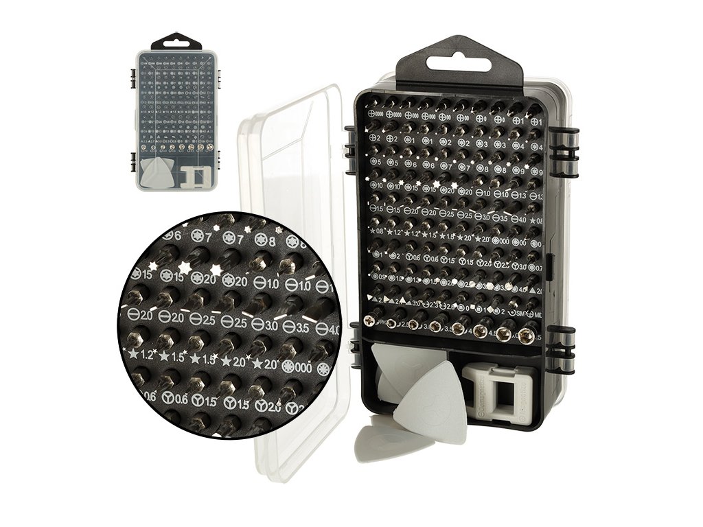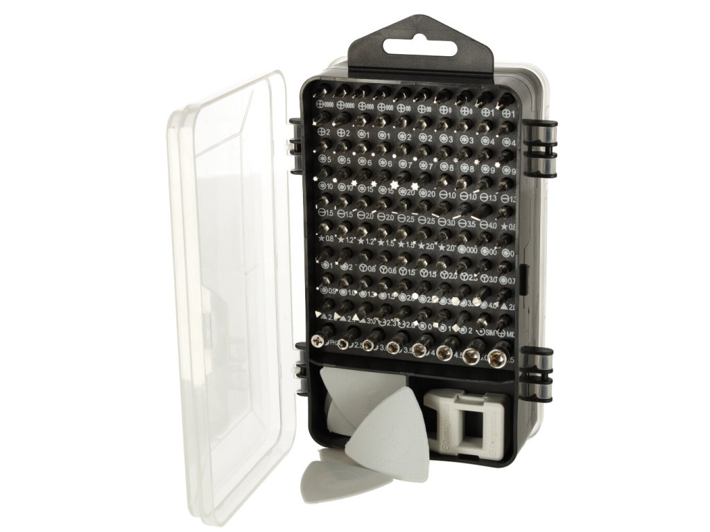 Osim odvijača i kompletne serije bitova set uključuje i dodatnu iznimno korisnu opremu, poput produžetka odvijača, pincete, usisne čašice za uklanjanje stakla, otvarača kućišta, ključa za izbacivanje SIM kartice i magnetizera.