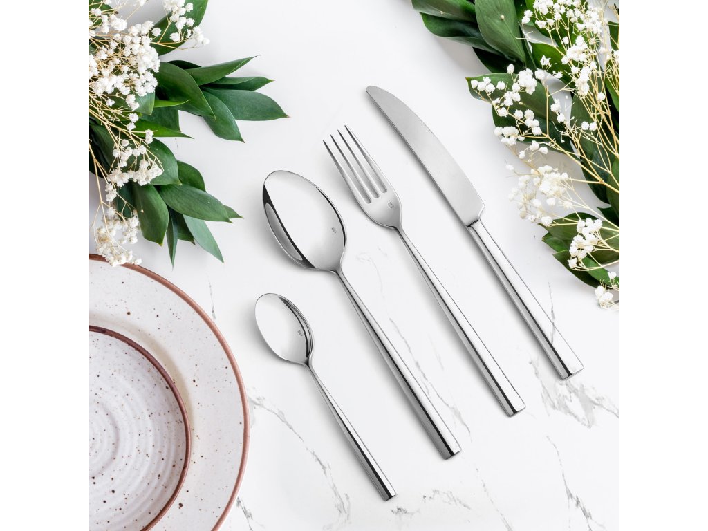 Pribor je apsolutno neophodan dio namještaja u svakom domu. Bilo da je vaše posuđe klasično ili modernije, minimalistički dizajn seta pribora Teesa pristajat će u svakom slučaju. Zahvaljujući visokokvalitetnom nehrđajućem čeliku, set pribora Teesa je izdržljiv i neće se izgrebati. Mogućnost pranja u perilici posuđa čini upotrebu i održavanje seta još praktičnijim.