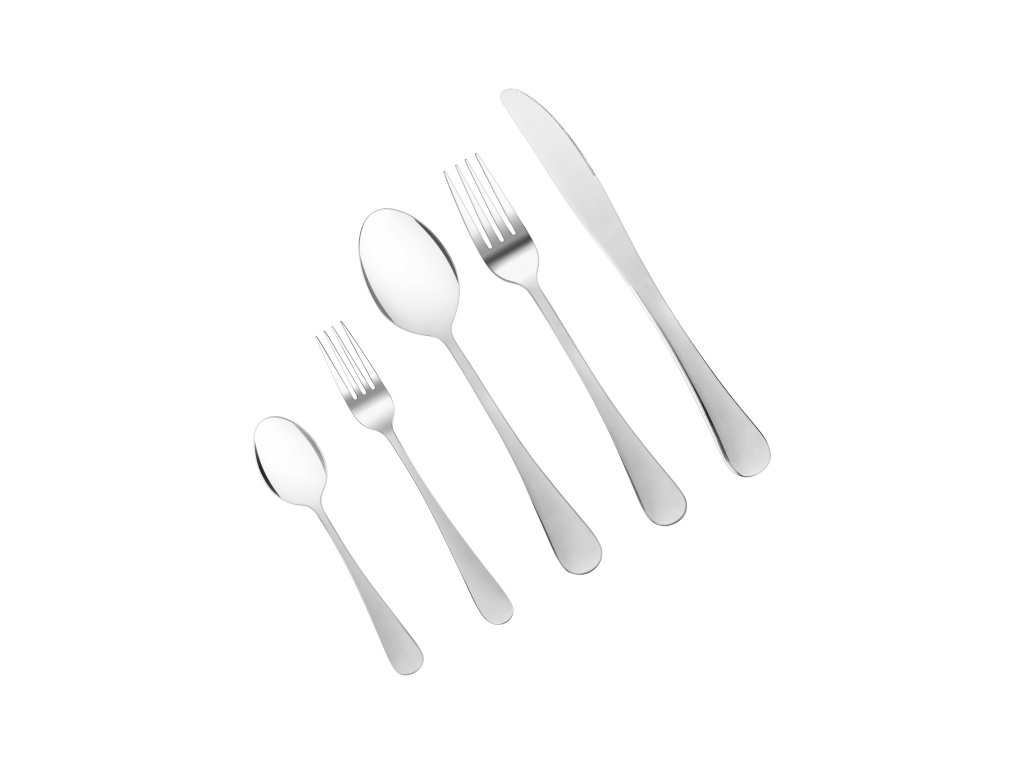Set uključuje žlice za juhu, vilice, noževe, žlice i vilice za tortu. Suptilan dizajn, istaknut zaobljenim rubovima, znači da se pribor savršeno uklapa uz bilo koju vrstu posuđa. Visok komfor korištenja osigurava ne samo savršena ravnoteža pojedinih elemenata, već i čvrsta izrada te jednostavno čišćenje.