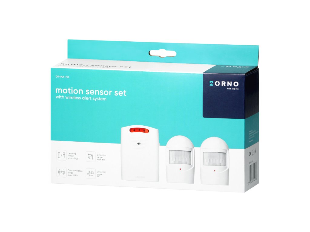 Komplet senzora za nadzor ulaza, hodnika, skladišta, podruma, prilaznih puteva, parkirališta itd. Svaki senzor ima indikator (prijamnik) koji, između ostalog, upozorava na otkriveno kretanje ili slabu bateriju. Domet na otvorenom prostoru je do 120 m, dok je domet detekcije kretanja do 7 m. Ugao gledanja senzora je približno 75°. Zaštita IP44 omogućuje instalaciju senzora na otvorenom i u zatvorenim prostorima s povećanom vlagom. Senzori su otporni na nepovoljne vremenske uvjete.Additional parameters