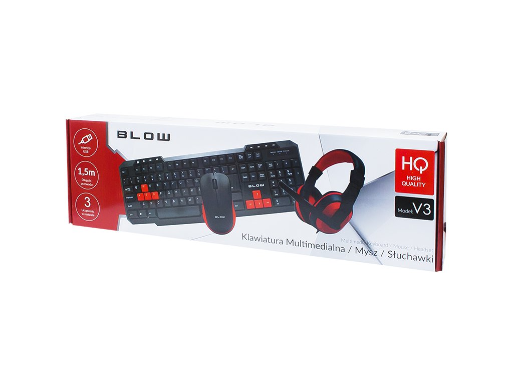 BLOW kabelski set koji se sastoji od tipkovnice, miša i slušalica u istoj crno-crvenoj shemi boja. Ovaj set je idealan ne samo za radne ili online sastanke, već i za mlade igrače računalnih igara.