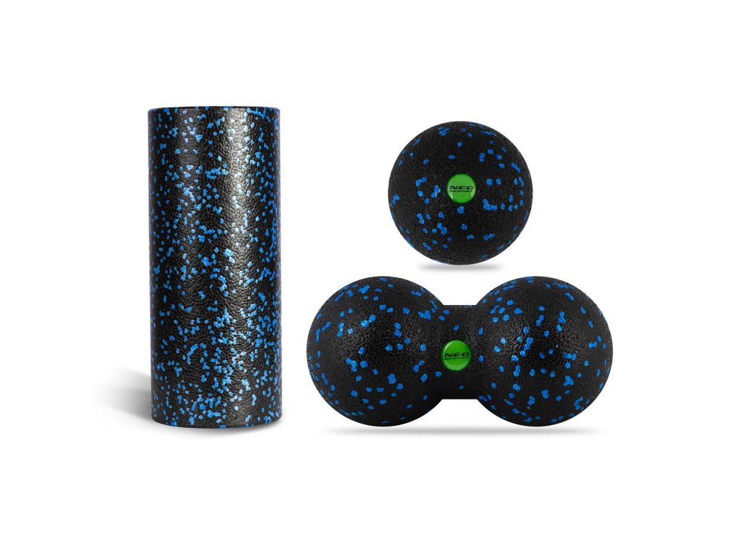 Set valjak za vježbanje + lopta + dvostruka masažna lopta NS-998 crno-plava