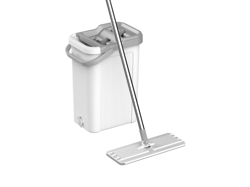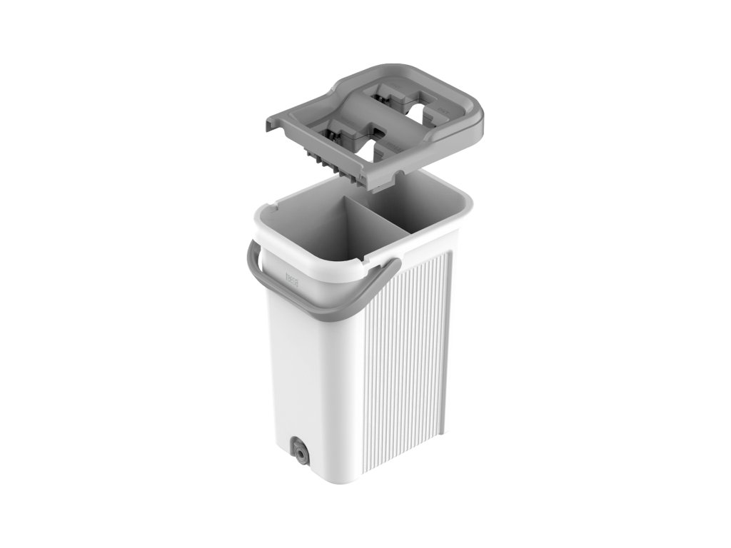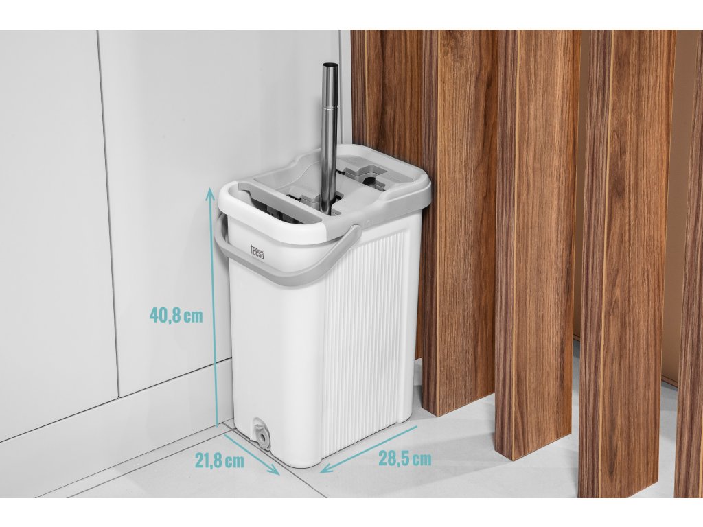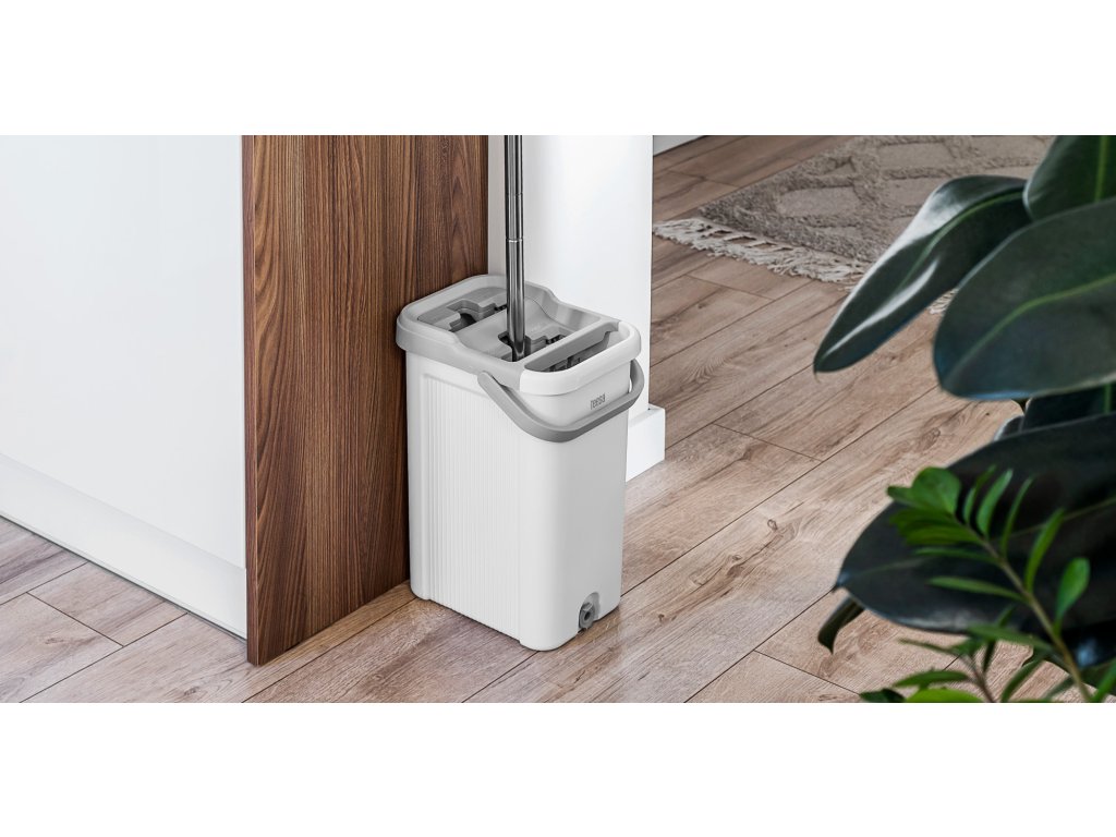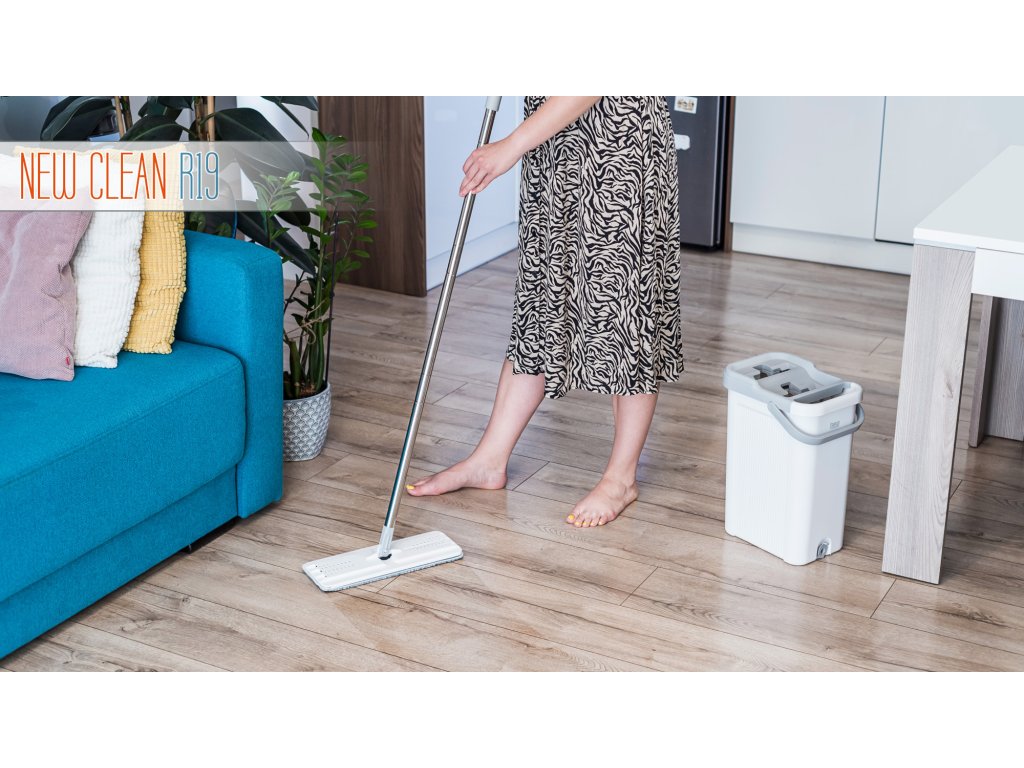 Tvrtka Teesa polaže važnost na praktična rješenja, pa je dvokomorna kanta za mop New Clean R19 dizajnirana tako da unatoč kapacitetu od 7,5 litara ne zauzima puno prostora pri skladištenju. Rukohvat mopa je uz to sklopiv, pa ga je moguće staviti u kantu.
