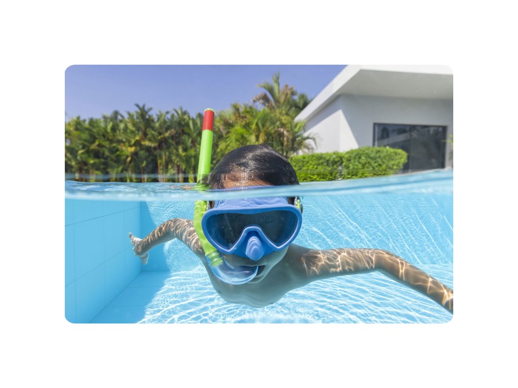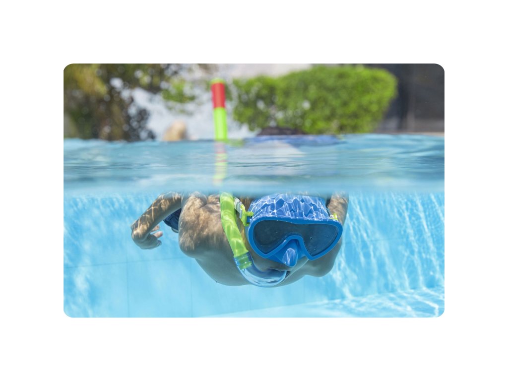 Sada možeš roniti i uživati u zabavi u vodi do mile volje! Maska za plivanje koja je uključena u set ima leće od polikarbonata