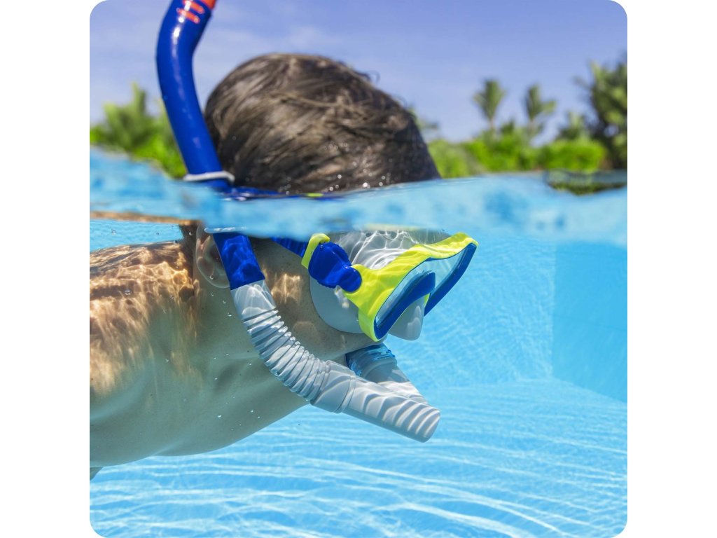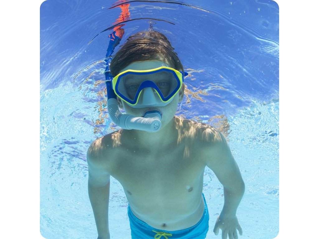 Sada možeš roniti i uživati u zabavi u vodi do mile volje! Plivačka maska, koja je dio seta, ima leće od polikarbonata