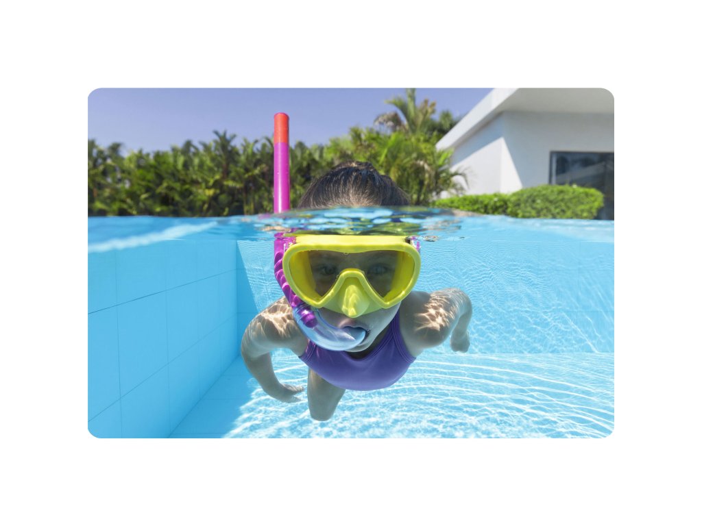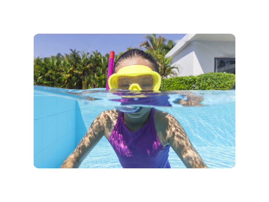 Sada možeš roniti i uživati u zabavi u vodi do mile volje! Maska za plivanje, koja se nalazi u setu, ima leće od polikarbonata.