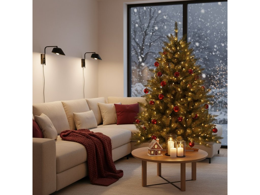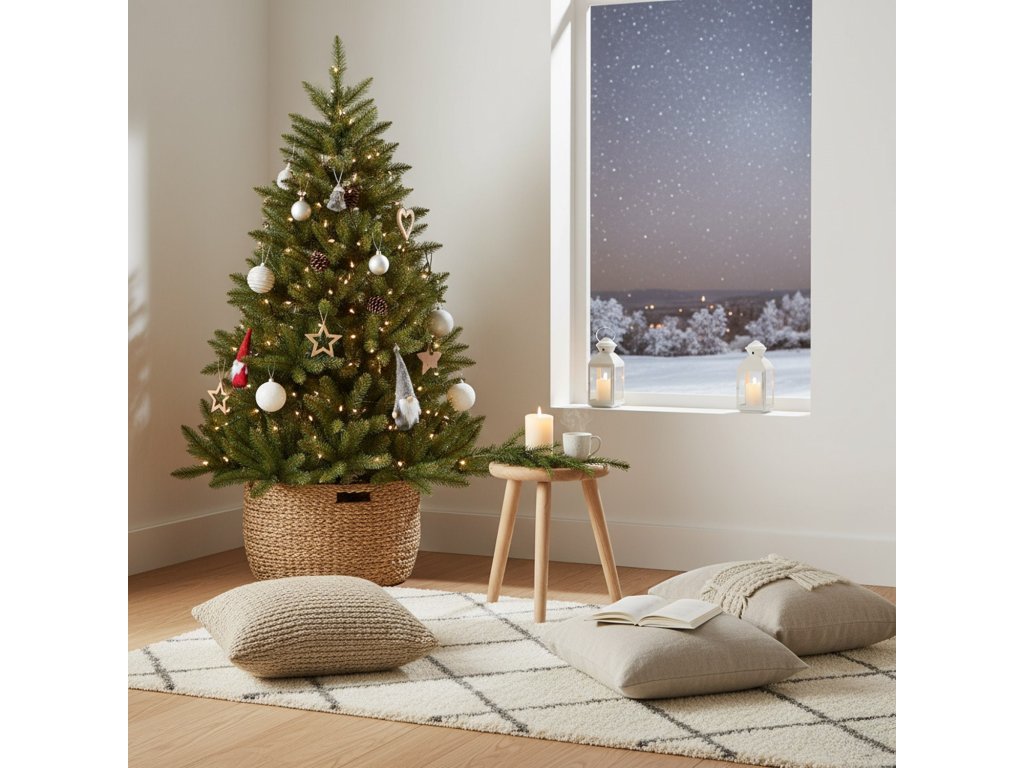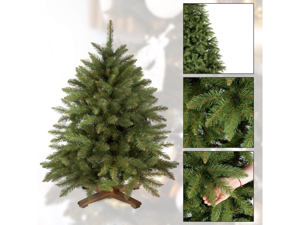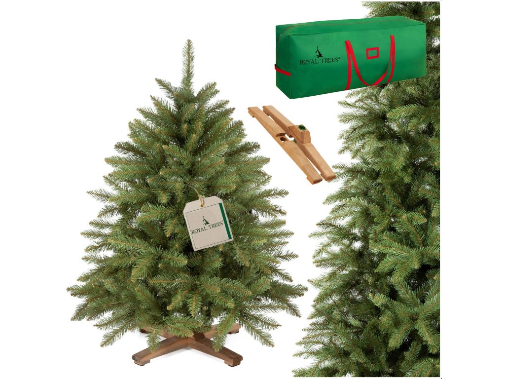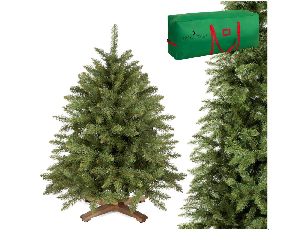 - Marka: Royal Trees® Vrsta drvca: Skandinavska smreka Ukupna visina (mjerena od tla): 120 cm Materijal iglica: ekološka PVC folija Boja iglica: zelena Tip postolja: četveronožni