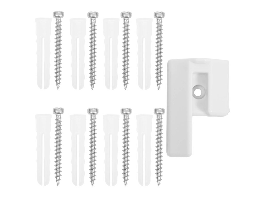 - Na svakoj strani su 2 pričvrsna elementa za zid, svaki s dvije montažne rupe, s razmakom od 5 cm. Donji element je pokretan – može se pričvrstiti na zid na odabranoj visini, gornji element je fiksan.