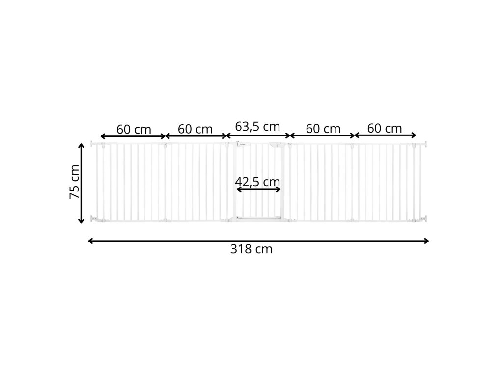 - Barijera se sastoji od 5 panela (jedan od njih sadrži vrata), koji su pokretno povezani i mogu biti postavljeni u bilo kojem obliku. Paneli su čvrsto povezani i ne mogu se odvojiti.