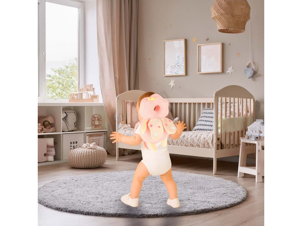 Ruksak s mekim naslonom za glavu bit će korisna potpora pri učenju hodanja. Mogu ga koristiti djeca koja imaju najmanje 12 mjeseci. Zatvorena konstrukcija štiti stražnji dio glave i leđa od pada na tvrdi pod ili namještaj. Dijete tako neće pretrpjeti bolne posljedice naglog pada - nema modrica ni ogrebotina. Jastučić omogućuje djetetu da hrabro pokuša samostalno stajati i hodati.