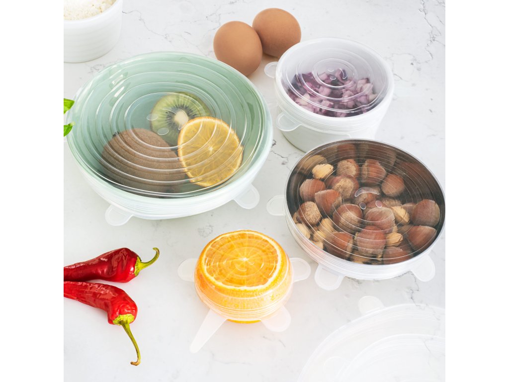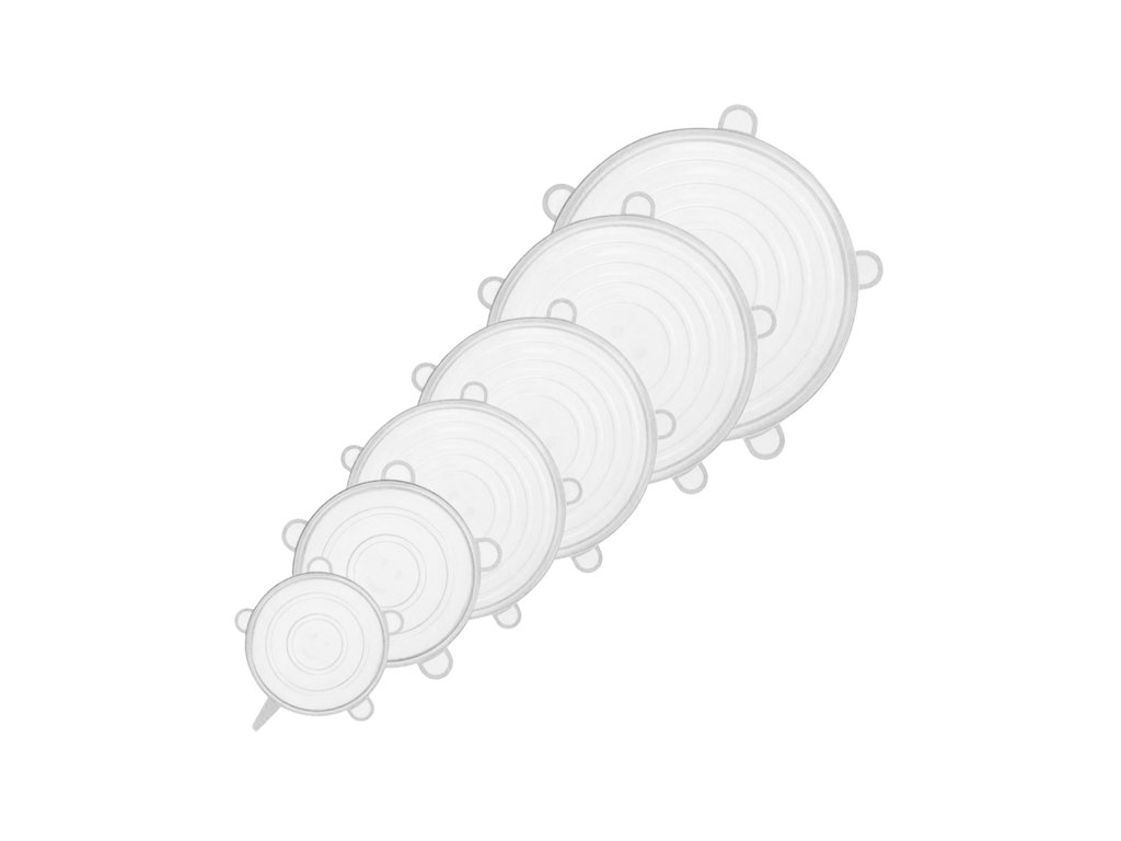 Set uključuje silikonske poklopce u šest veličina, od 6,5 cm do 20,5 cm. Svaki od njih ima praktične ručke, koje olakšavaju precizno stavljanje i uklanjanje s posude.