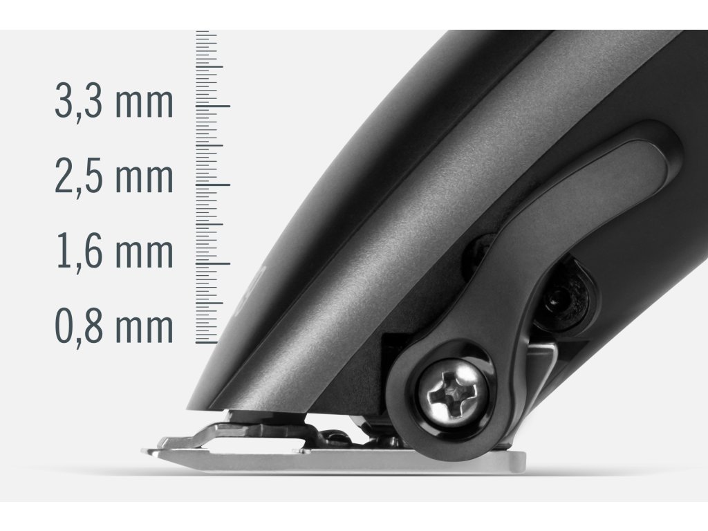 Za još veću preciznost, mašinica za kosu Teesa CUT PRO X300 dodatno je opremljena polugom za zatamnjenje s četverostupanjskim podešavanjem noža - 0,8 mm, 1,6 mm, 2,5 mm i 3,3 mm. Odaberite duljinu i počnite uređivati svoju vlastitu frizuru!
