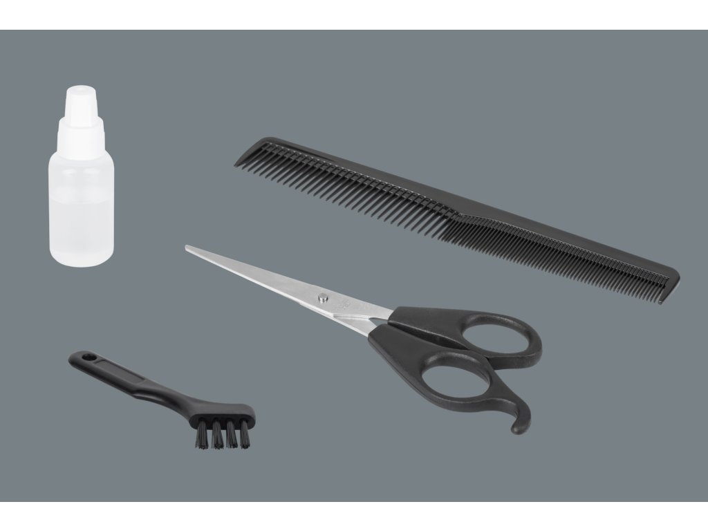 Sadržaj: zaštitni poklopac, 4 nastavka za češalj, češalj, škare, četkica za čišćenje, ulje za održavanje