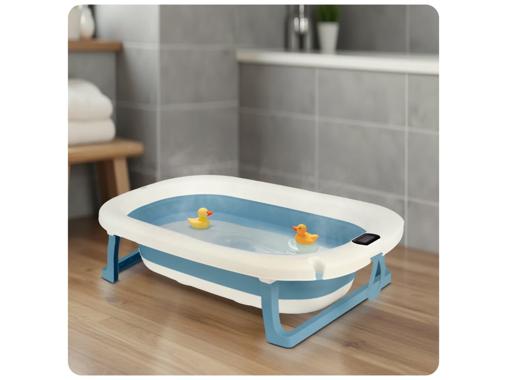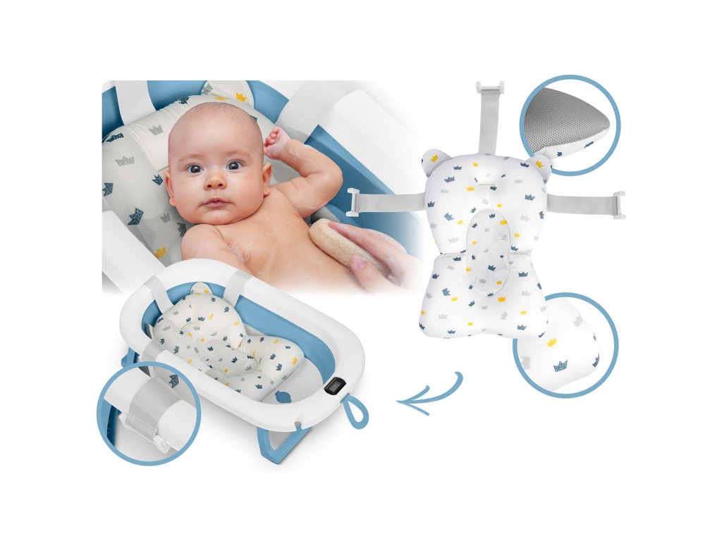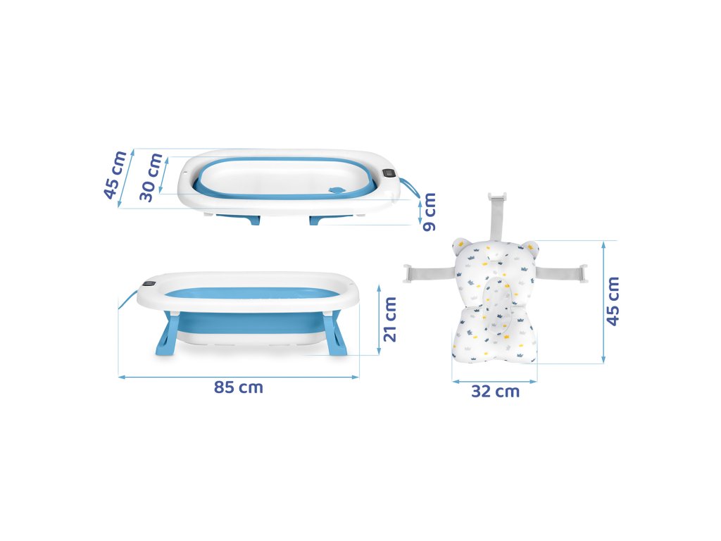 Sklopiva kada za djecu i dojenčad s termometrom i umetkom RK-287 bijelo-plava