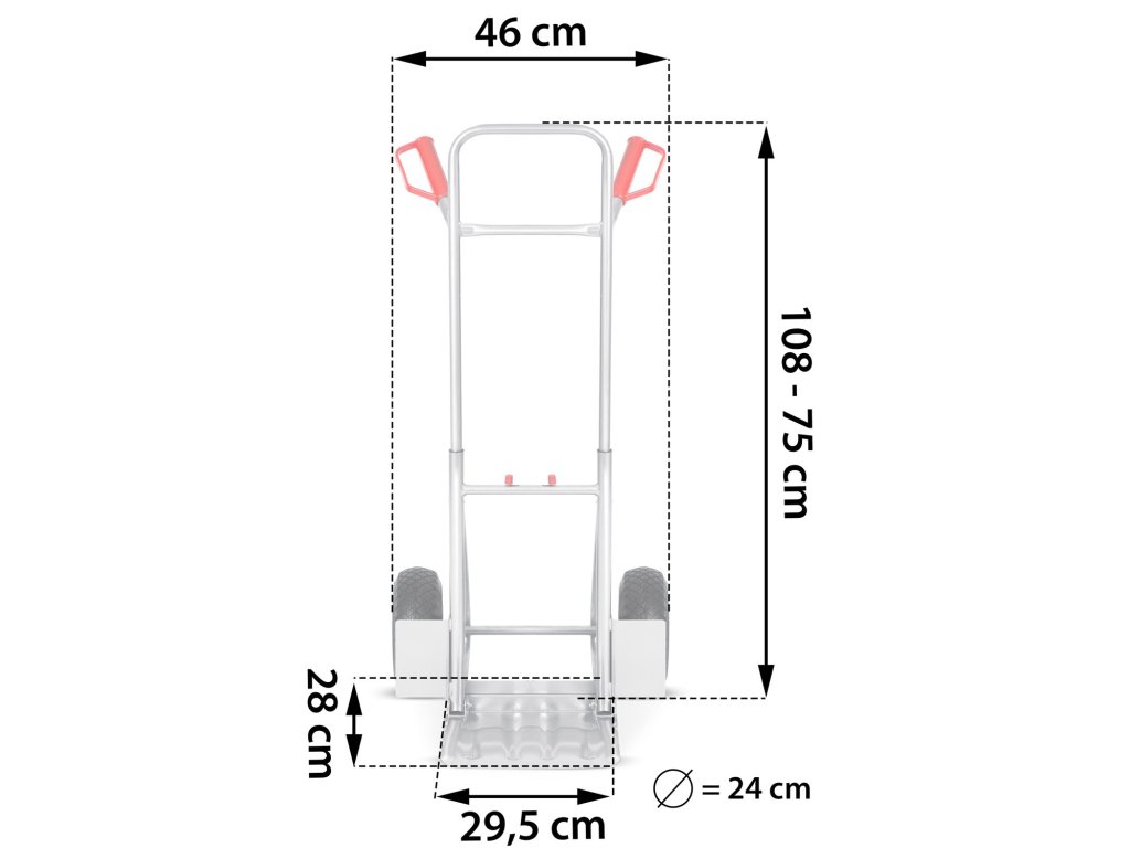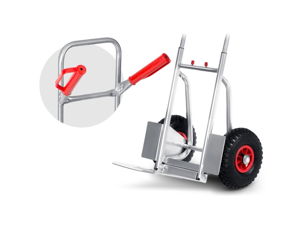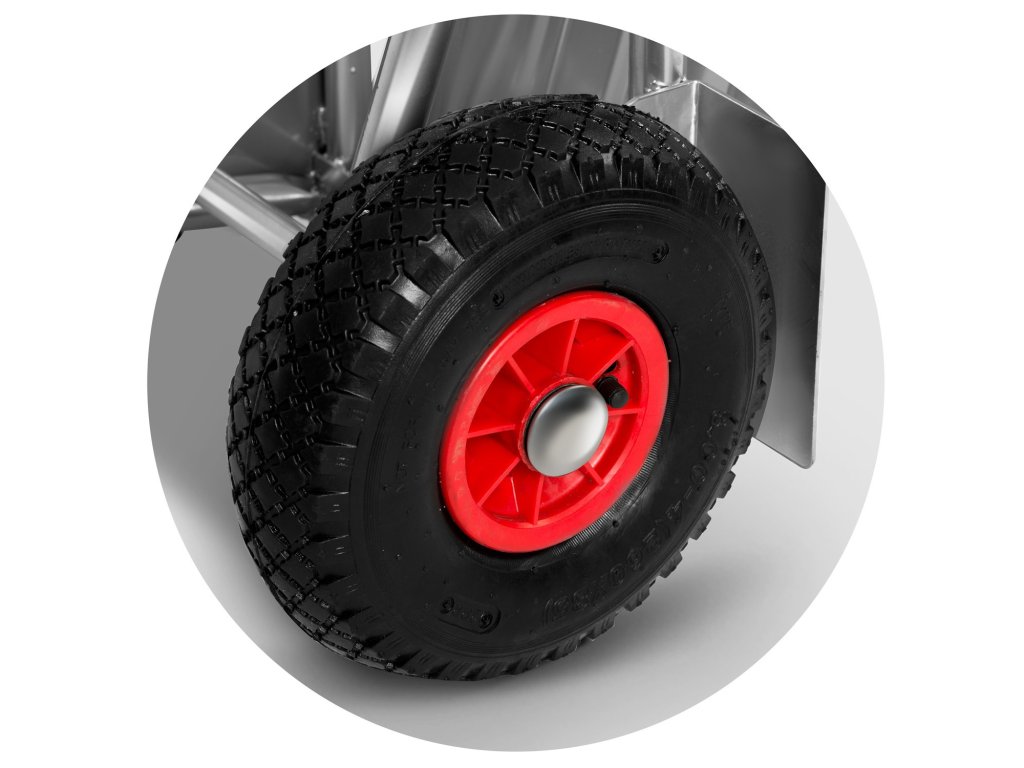 - kolica imaju 2 velika napuhujuća kotača s ventilima i metalnom ojačanjem, što omogućuje učinkovito i precizno manevriranje kolicima,