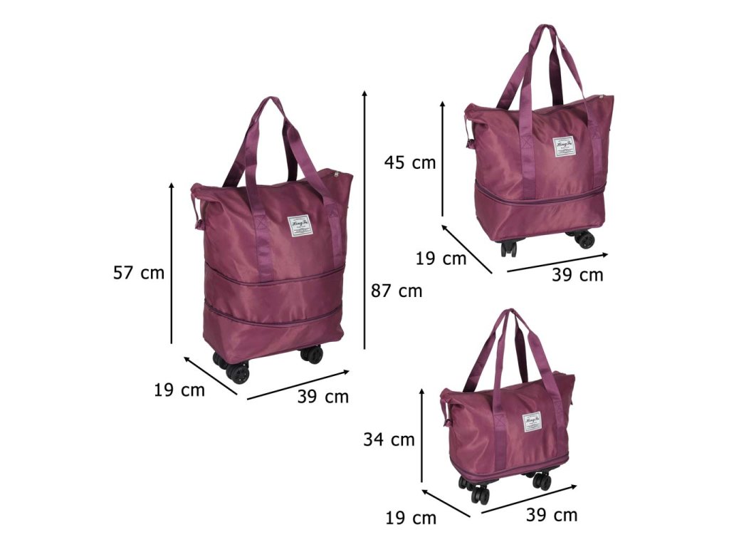 Sklopiva putna torba na kotačima prostrana 3 veličine ljubičasta