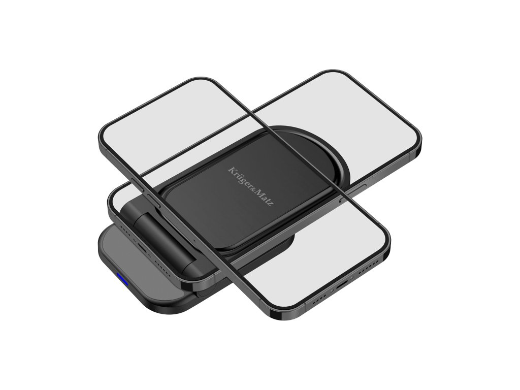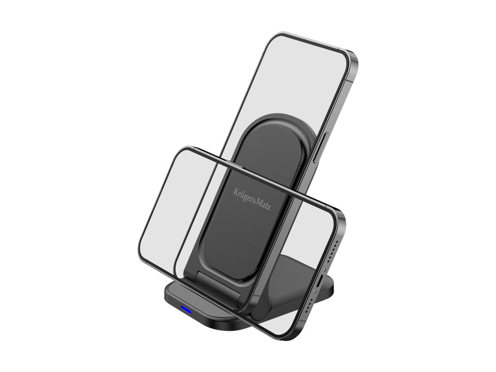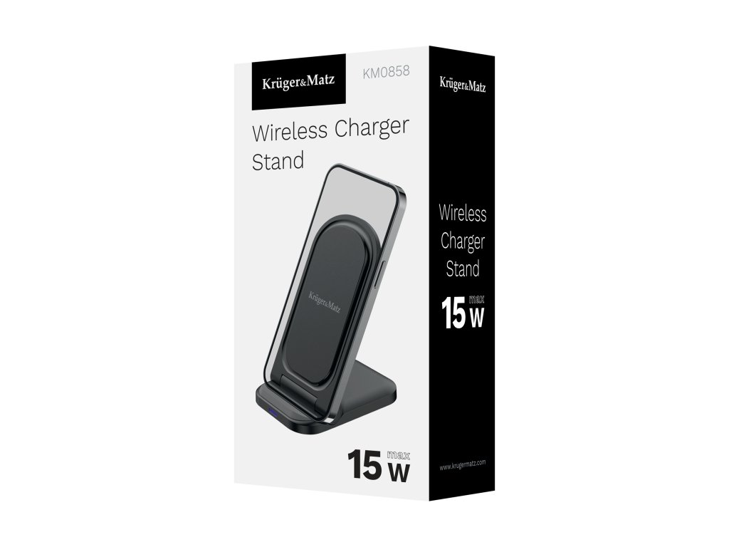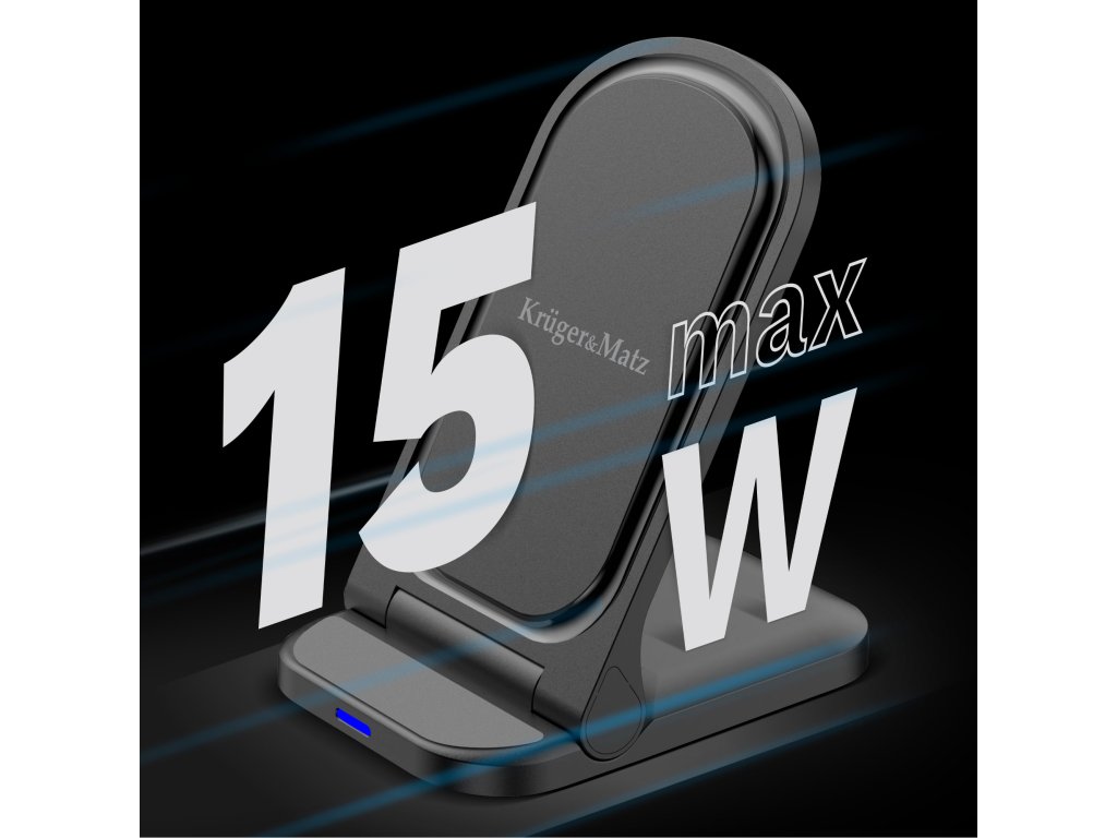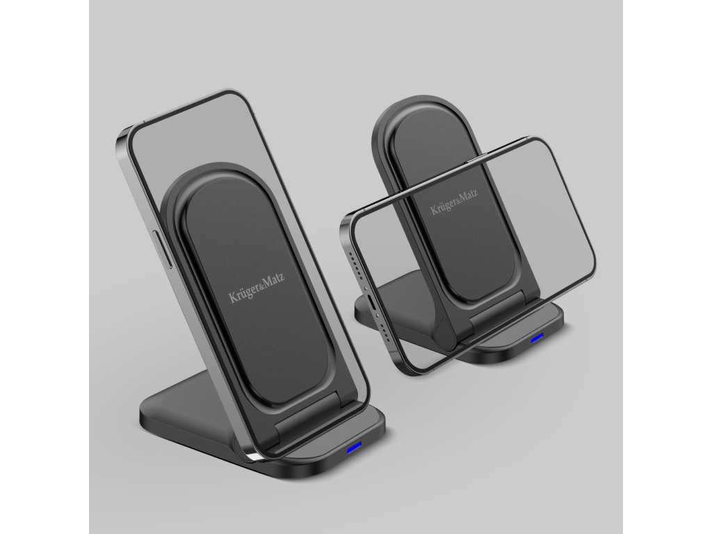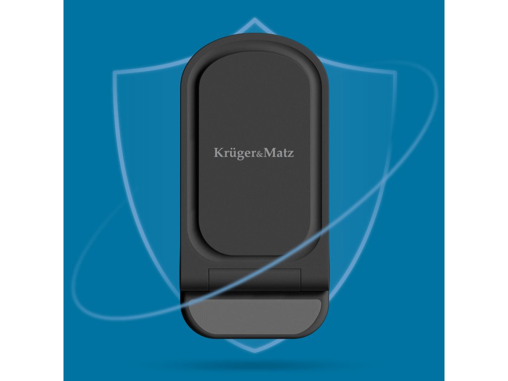 Bežični punjač Kruger&Matz savršena je kombinacija moderne tehnologije i funkcionalnog dizajna. Zahvaljujući njemu, punjenje pametnog telefona ili drugog mobilnog uređaja postaje jednostavno i udobno. Dovoljno je da ga postavite na stalak i proces će se automatski pokrenuti.