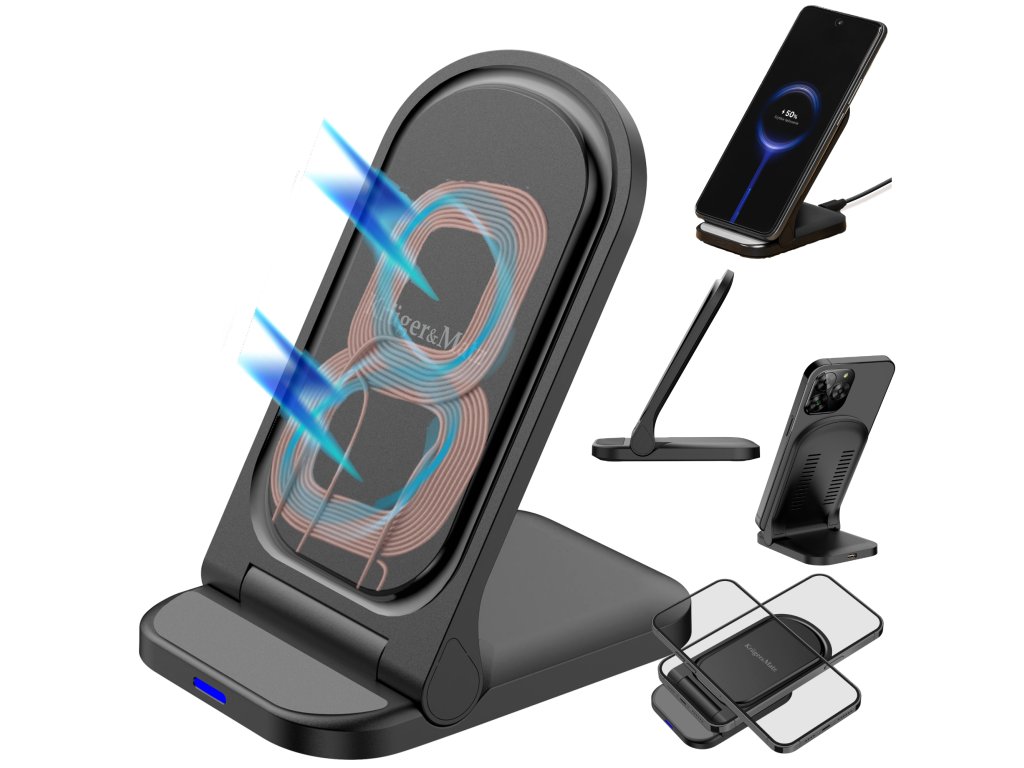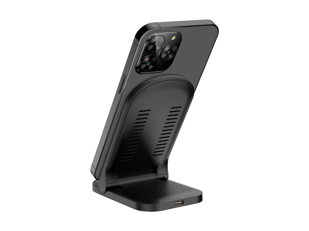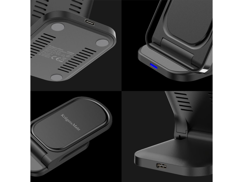 Punite svoje uređaje na način koji vam je najudobniji! Indukcijski punjač KM0858 omogućuje punjenje u vertikalnom, horizontalnom položaju ili kao stalak. Ovo praktično rješenje omogućuje da tijekom punjenja, na primjer, gledate filmove bez brige da će se baterija isprazniti tijekom gledanja. Idealno rješenje za dom, ured i putovanja.