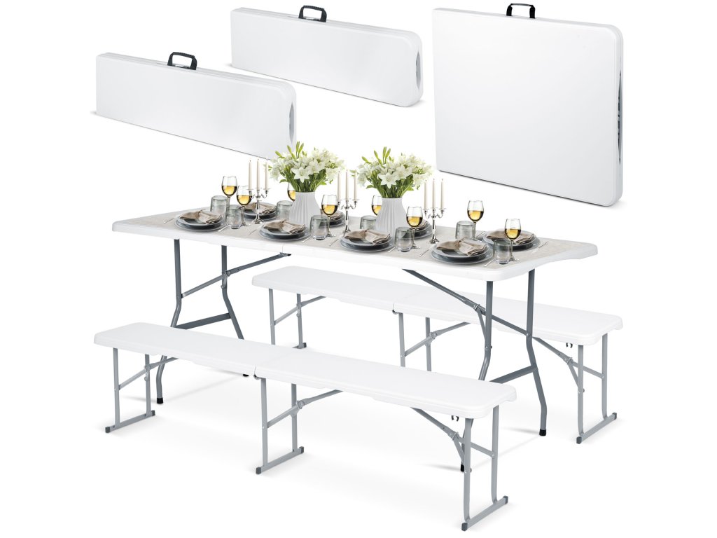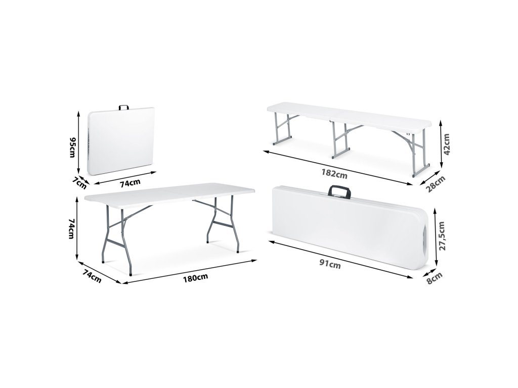Sklopivi vrtni set klupa + 2 klupe 180 cm Plonos bijela