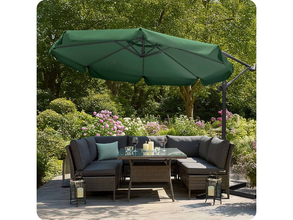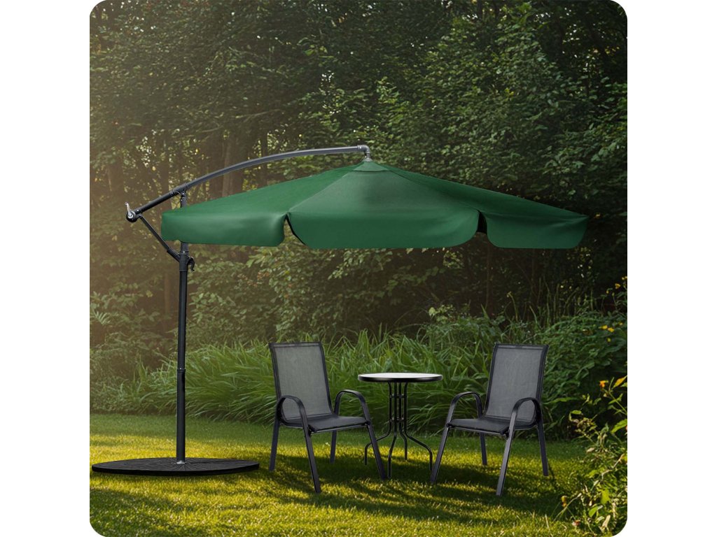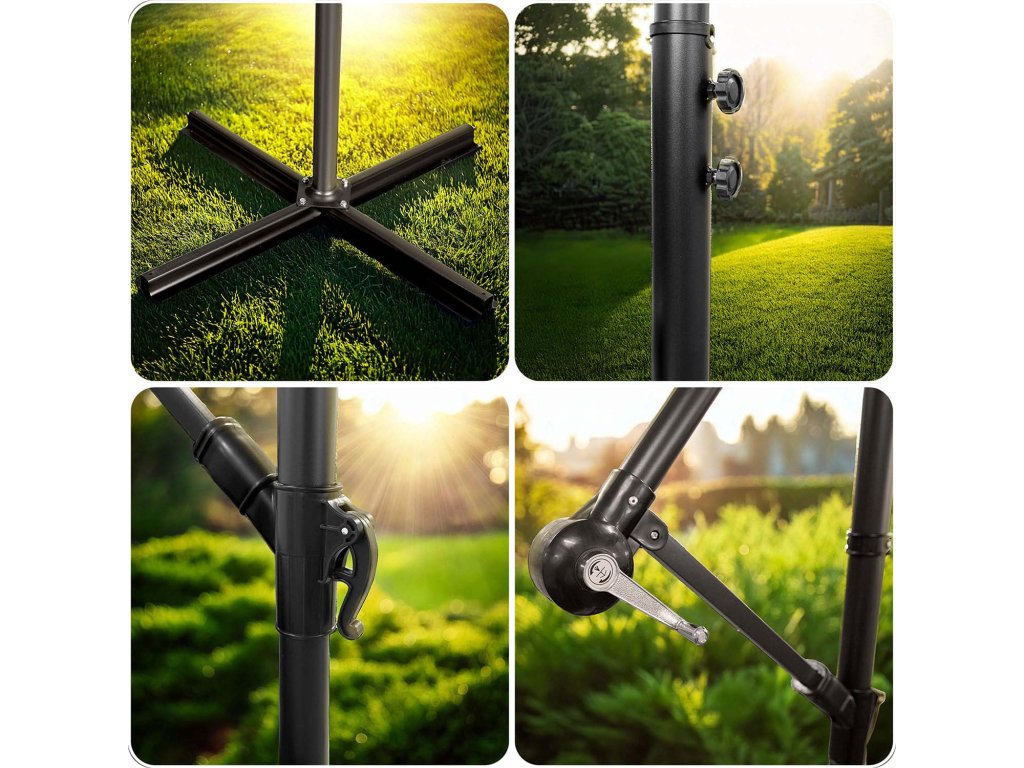 Pokrivač od izdržljivog materijala Oxford savršeno štiti suncobran od štetnog djelovanja UV zračenja i drugih vremenskih uvjeta, sprječava blijedenje materijala i produžuje njegov vijek.