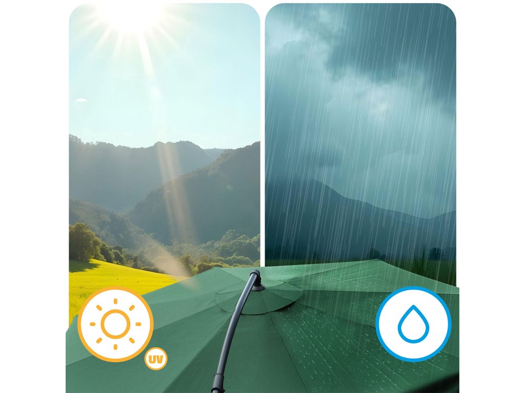 - Kisa Nema šanse! Zahvaljujući vodootpornom materijalu PE naš suncobran učinkovito štiti od svake kapi.