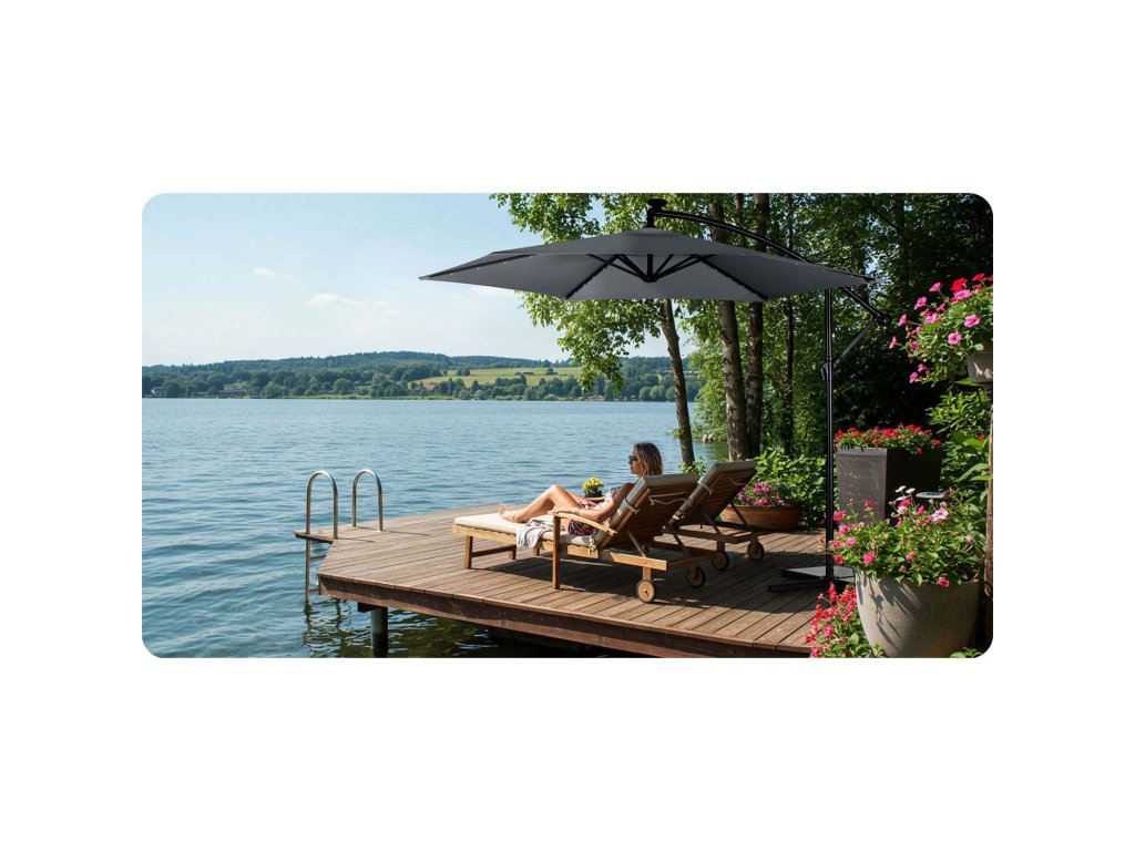 - Mogućnost proizvoljnog postavljanja suncobrana: visina + kut nagiba.