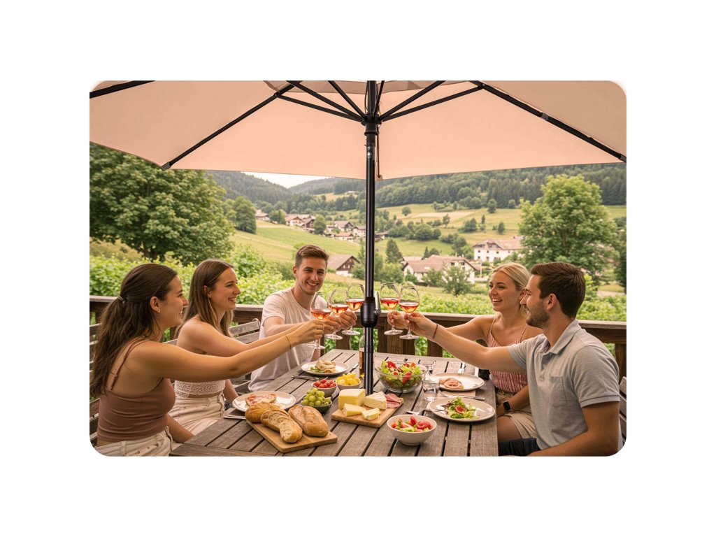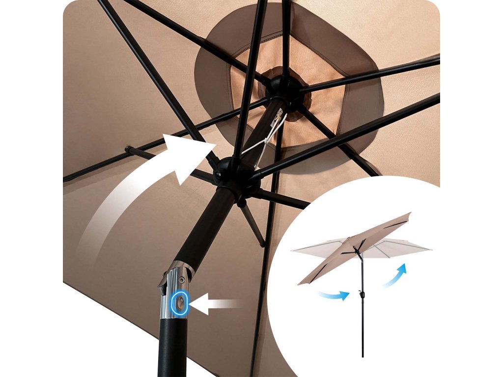 - Mogućnost podešavanja kuta nagiba suncobrana po želji.