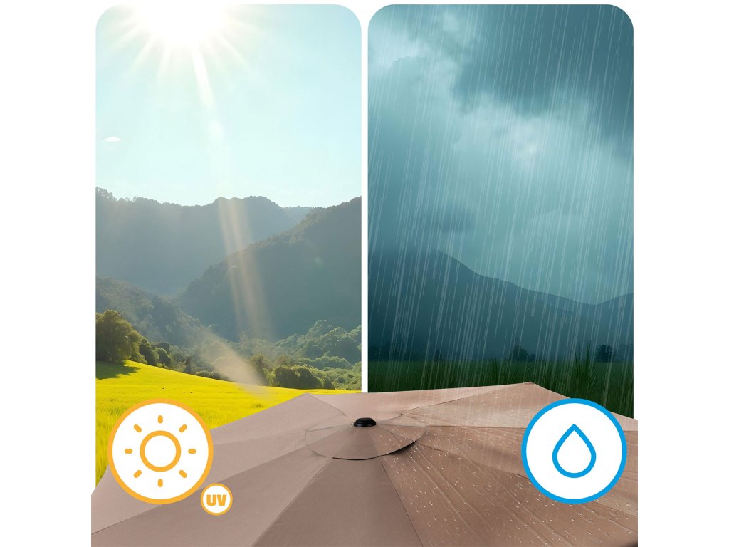 - Kiša Nema šanse! Zahvaljujući vodootpornom materijalu PE naš suncobran učinkovito štiti od svake kapi.