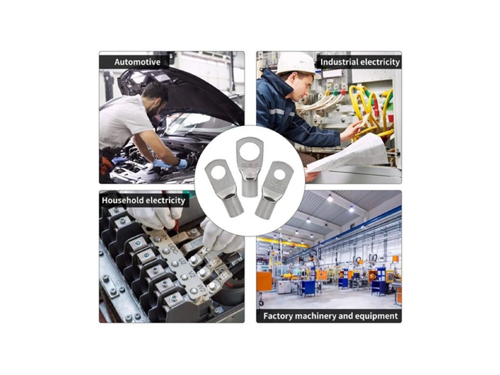 Set od 60 prstenastih završetaka za kabel Najviše kvalitete, kositrani bakreni proizvod, ekološki, siguran za korištenje Različiti stisnuti završeci upakirani u praktičnu kutiju s pretincima Specifikacija: materijal: kositrani bakar boja: srebrna količina: 60 komada / 1 set Paket sadrži: 5 komada x stezaljki SC25-8 (širina otvora za vodič 7mm, otvor za vijak 8,5mm) 5 komada x stezaljki SC25-6 (širina otvora za vodič 7mm, otvor za vijak 6,5mm) 5 komada x stezaljki SC16-8 (širina otvora za vodič 6mm, otvor za vijak 8,5mm) 5 komada x stezaljki SC16-6 (širina otvora za vodič 6mm, otvor za vijak 6,5mm) 10 komada x stezaljki SC10-8 (širina otvora za vodič 5,4mm, otvor za vijak 8,5mm) 10 komada x stezaljki SC10-6 (širina otvora za vodič 5,4mm, otvor za vijak 6,5mm) 10 komada x stezaljki SC6-8 (širina otvora za vodič 4,1mm, otvor za vijak 8,5mm) 10 komada x stezaljki SC6-6 (širina otvora za vodič 4,1mm, otvor za vijak 6,5mm)Set od 60 prstenastih završetaka za kabel