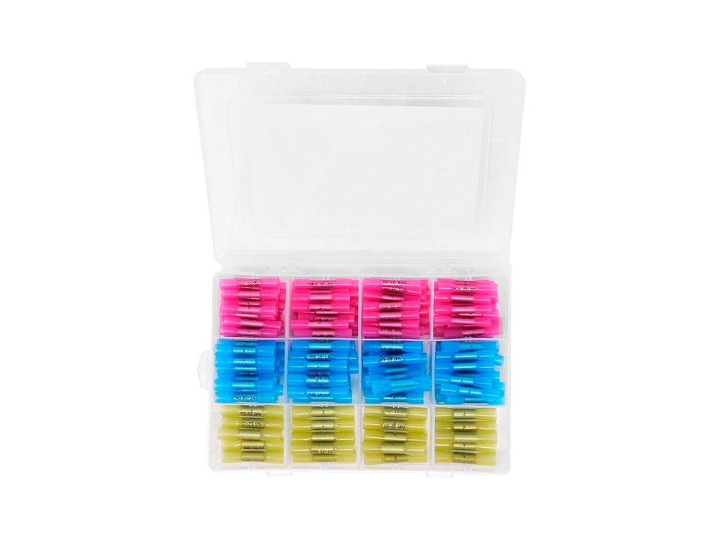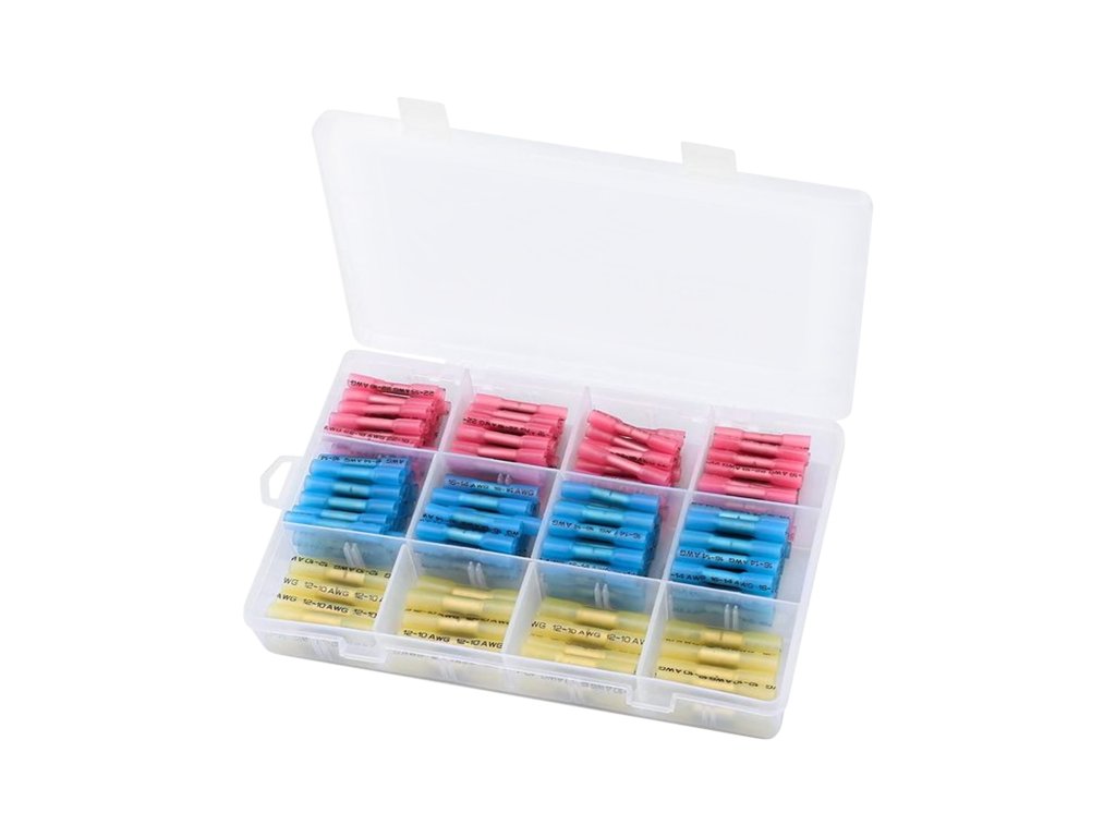 Set od 200 toplinski skupljajućih brzih spojeviToplinski skupljajući brzi spoj s obručem je neophodan kada želite sigurno i čvrsto povezati ili popraviti kabele. Toplinska skupljajuća cijev sadrži spojni obruč, koji se stisne pomoću alata za prešanje ili kliješta.