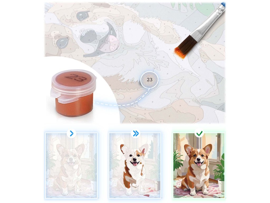 - Dodijelite boju broju: svaka površina na platnu ima dodijeljen broj, koji odgovara specifičnoj boji boje iz seta.
