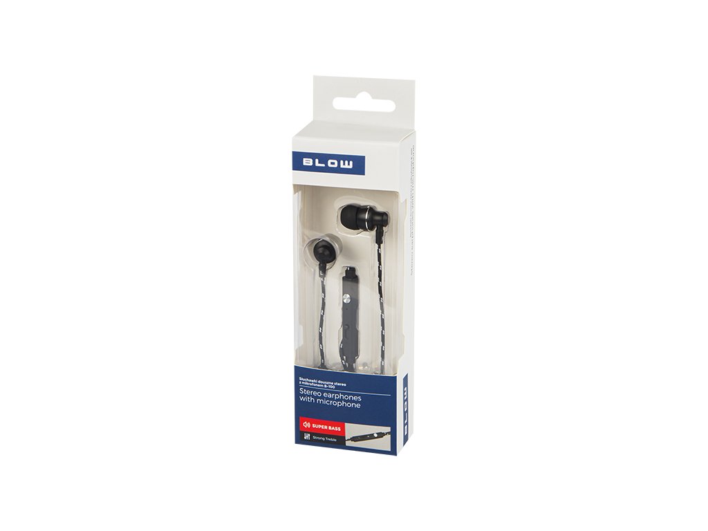 Słuchawki douszne BLOW serii B-100 wykonano z największa starannością o szczegóły. Słuchawki B-100 są wyjątkowo odporne na uszkodzenia mechaniczne. Elementy obudowy słuchawek i złącza Jack zostały wykonane z metalu a przewód znajduje się w osłonie nylonowej, przez co stał się bardziej odporny na rozciąganie i plątanie. Słuchawki wyposażono w pozłacany Jack, regulację głośności, mikrofon, przycisk uniwersalny i funkcję zestawu słuchawkowego do rozmów telefonicznych.