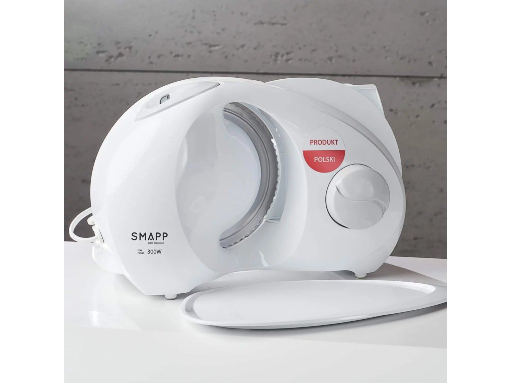 Rezač 294.5 SMAPP 300W*, je nasljednica rezača 294.5 Zelmotor 200W. Izrađena od materijala najviše kvalitete, osiguravajući dug vijek trajanja, udobnost i sigurnost korištenja. Model je opremljen motorom s snagom do 300W! To je jedan od najjačih i najtrajnijih rezača dostupnih na poljskom tržištu. Tehnički podaci Dimenzije (duž. šir. vis.): 36 × 25 × 24 cm Boja uređaja bijela Maksimalna snaga [W] (MBS/PeakPower) 300 Raspon rezanja [mm] 0-15 Regulacija brzine: ne Izvedba noža nehrđajući čelik Izvedba baze plastika Osnovna oprema upute za uporabu na poljskom, jamstvena kartica Dodatna oprema protuklizne noge, zaštita protiv preopterećenja Jamstvo 24 mjeseca Zemlja podrijetla Poljska Proizvođač Zelmotor Sp. z o.o. Sadržaj rezač 294.5 SMAPP Bijela nož od kaljenog nehrđajućeg čelika za pecivo upute za uporabu na poljskom jamstvena kartica protuklizne noge ladicaRezač 294.5 SMAPP 300W*, je nasljednica rezača 294.5 Zelmotor 200W.