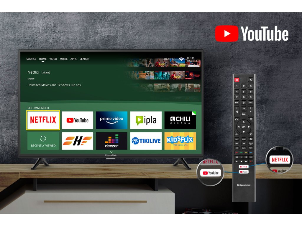 Aplikacje: Netflix, Youtube, Prime Video, Chili, Deezer, KIdsFlix