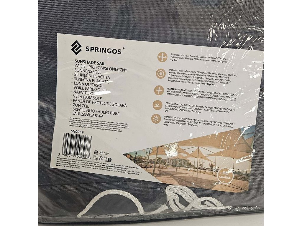 SN0059 SUNČANO JEDRO 4 X 2 M TAMNO SIVA