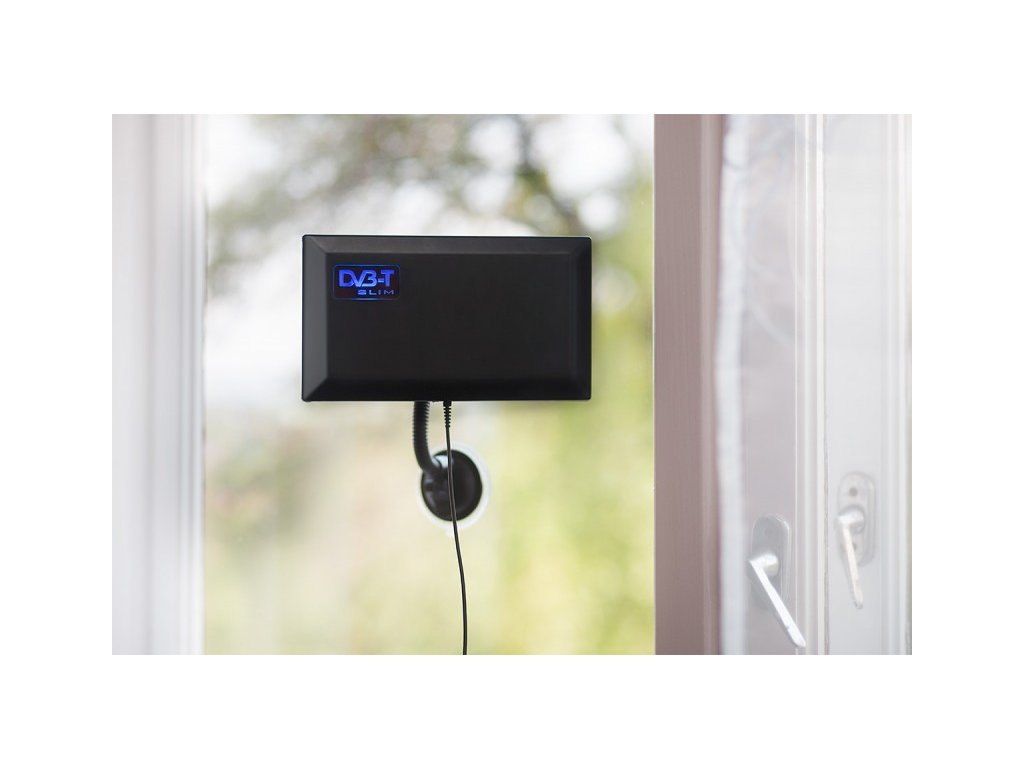Antena za prijem digitalnih zemaljskih televizijskih prijenosa DVB-T i analognog i radijskog prijenosa DAB u rasponu 174 - 230 MHz, 470 - 862 MHzMale dimenzije, moderan dizajn, spremna za korištenje nakon vađenja iz pakiranja.