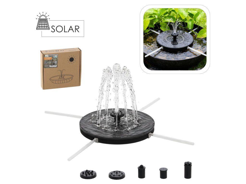 Solarna fontana je idealna dekoracija za vrt. Zahvaljujući upotrebi solarnih panela, vodena pumpa koristi sunčevu svjetlost kao izvor energije i stvara prekrasnu fontanu. To je svakako sigurno i ekološko rješenje. Fontana se može koristiti ne samo u ribnjaku, već i u malim ribnjacima, rezervoarima ili većim kamenim fontanama.• Promjer: 16 cm